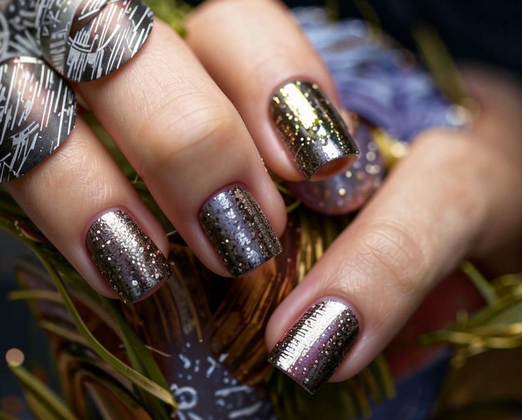 Металлические акценты на пике популярности. Это может быть как полноценное покрытие, так и детали в виде 3D-элементов или ногтевого пирсинга.