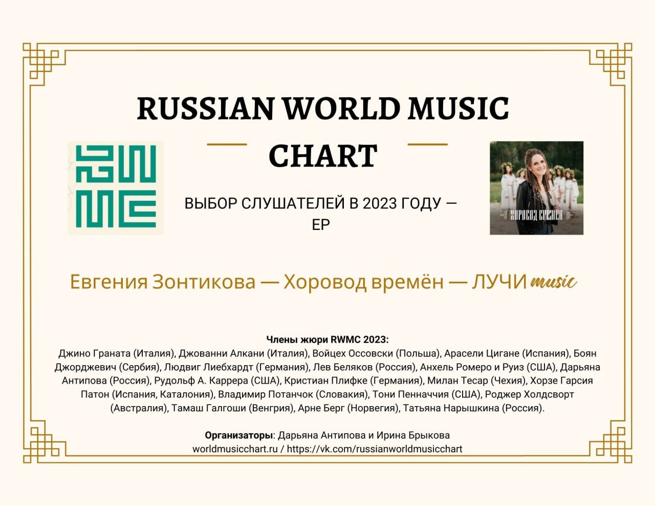 Мини-альбом тюменских музыкантов «Хоровод времён» победил в номинации «Выбор слушателей» проекта Russian World Music Chart. Музыку записала певица Евгения Зотникова совместно с фольклорными ансамблями Ирины Светловой «Радоница» и «Светлица».
