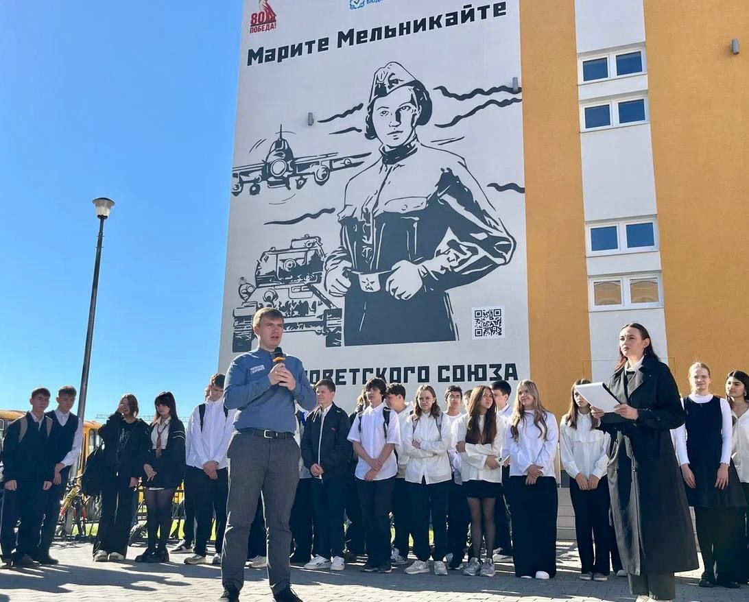 Портрет Героя социалистического труда Василия Гольцова украсил фасад школы №88 на Московском тракте. На фасаде гимназии №4 на улице Вьюжной появился портрет Героя Советского Союза Мариты Мельникайте.