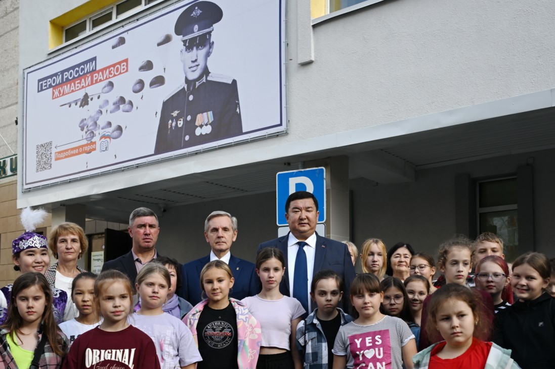 Баннер с портретом Героя Российской Федерации Жумабая Раизова открыли в Тюмени на фасаде детско-юношеского центра «Авангард», носящего его имя. Торжественное мероприятие прошло в рамках совместного проекта партии «Единая Россия» и Минпросвещения РФ «Лица Героев». Его участниками стали воспитанники и педагоги центра.