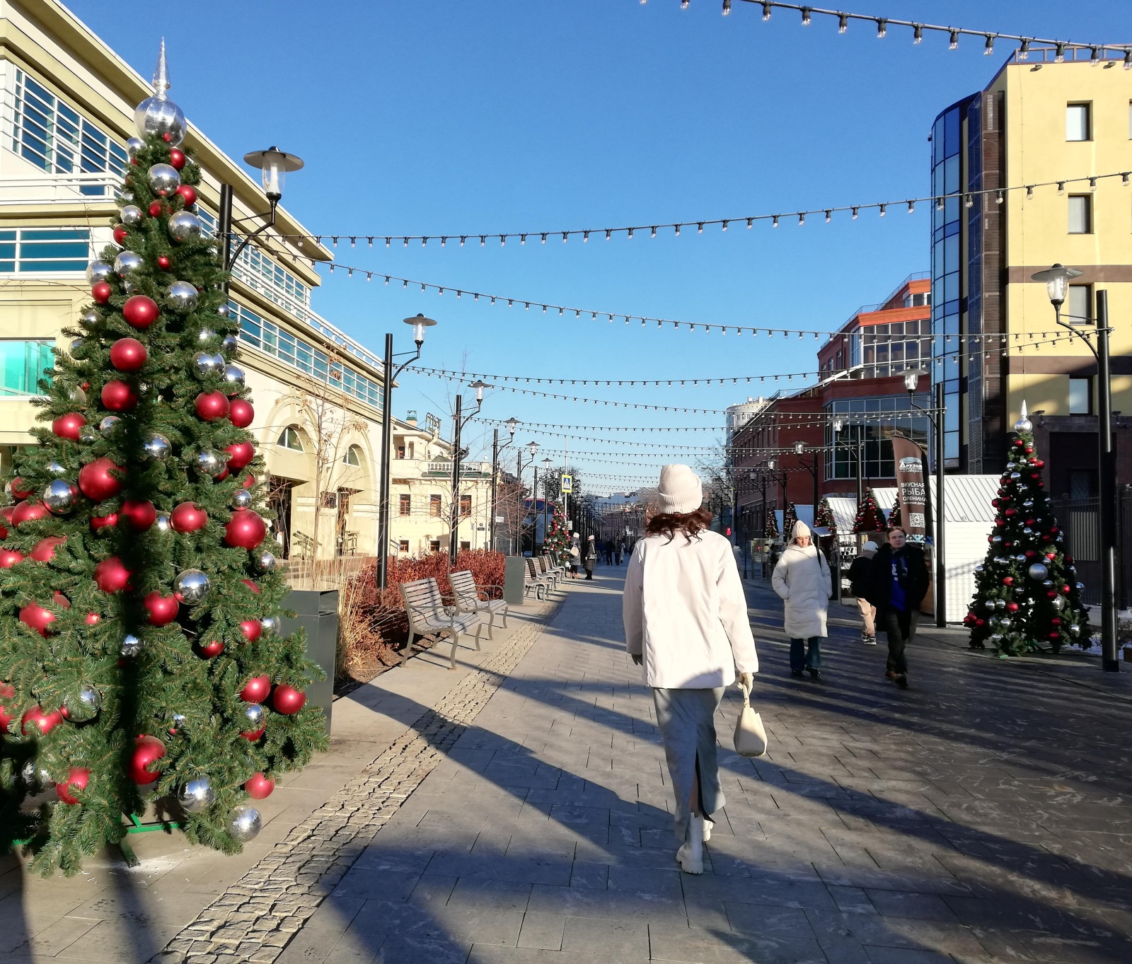 Со стороны улицы Республики на площади появилось пожелание «С Новым годом», огромные новогодние шары.