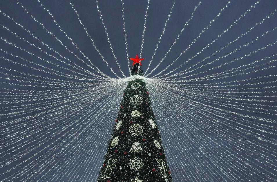 На площади 400-летия Тюмени зажглись огни главной городской елки. Ее высота 27 метров.