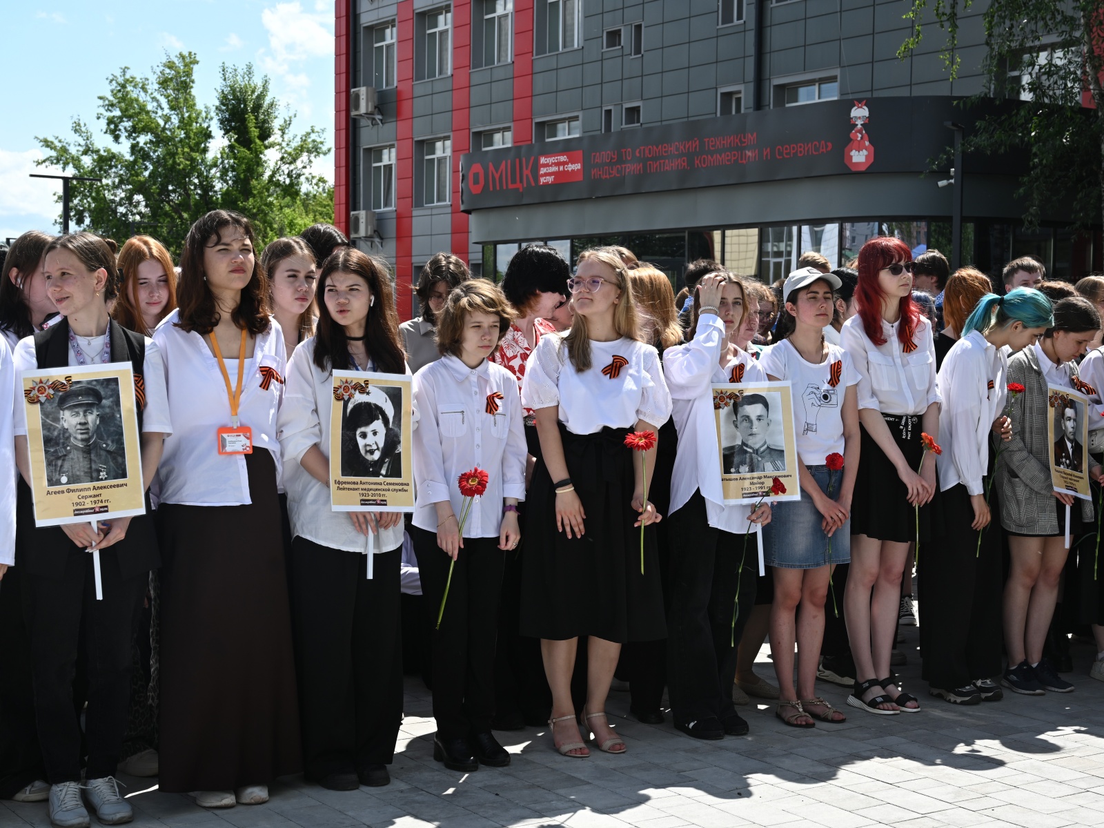 Он поблагодарил за сохранение исторической памяти руководство, педагогов и студентов Тюменского техникума индустрии питания, коммерции и сервиса, на территории которого находится памятник — белоснежные фигуры мужчины и мальчика на двухъярусном постаменте.