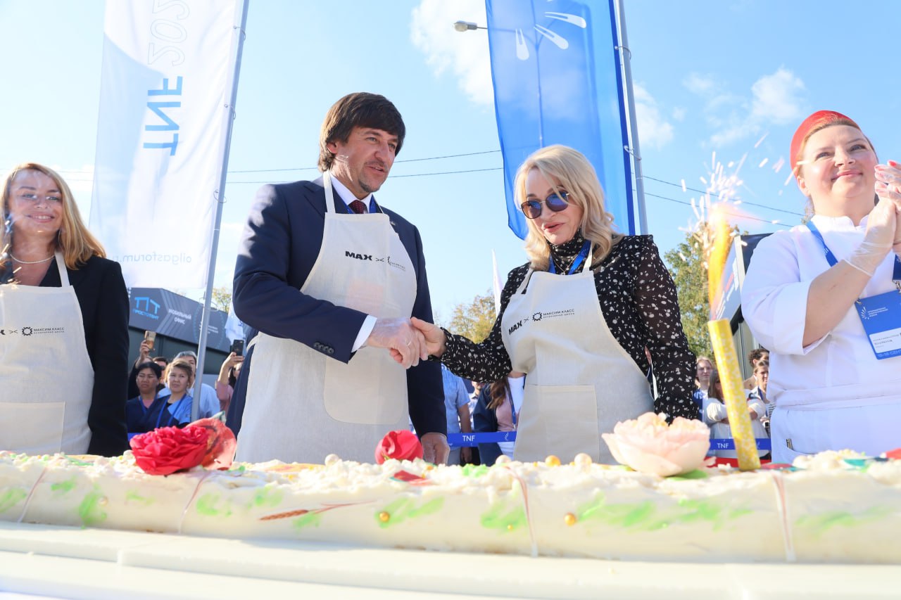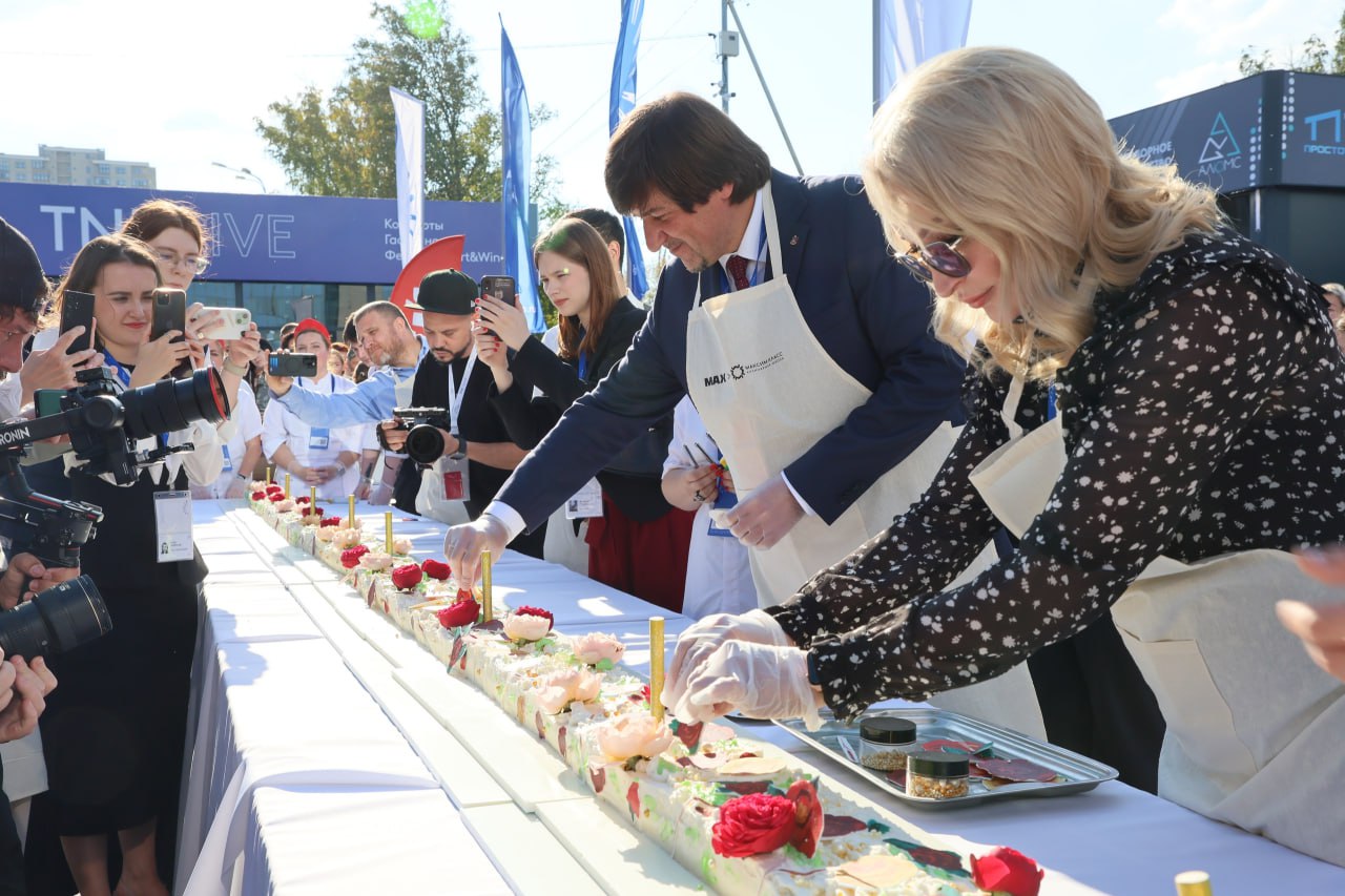 В честь десятого, юбилейного промышленно-энергетического форума TNF в Тюмени приготовили гигантский торт. Его длина составила 10 метров 35 см. Десерт выполнен в оригинальном стиле знаменитого тюменского белого махрового ковра. Рекорд официально зафиксирован федерацией ревизоров гостеприимства в рамках Всероссийского фестиваля аномальной гастрономии.