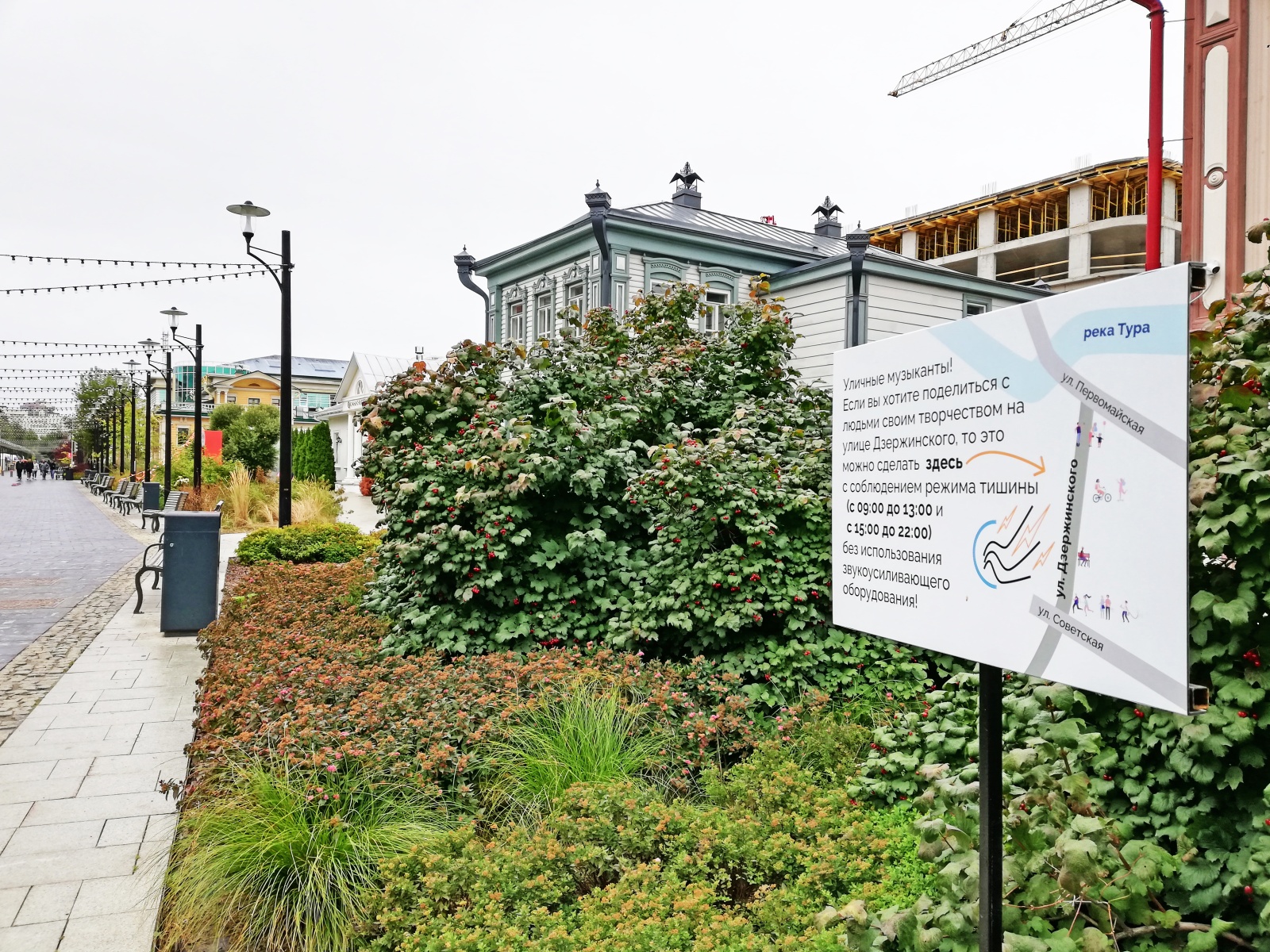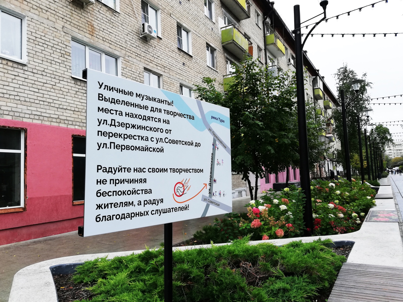 На пешеходной улице Дзержинского в Тюмени появилась новая навигация. На участке от улицы Советской до Первомайской установлены таблички, указывающие на пространство для уличных музыкантов.