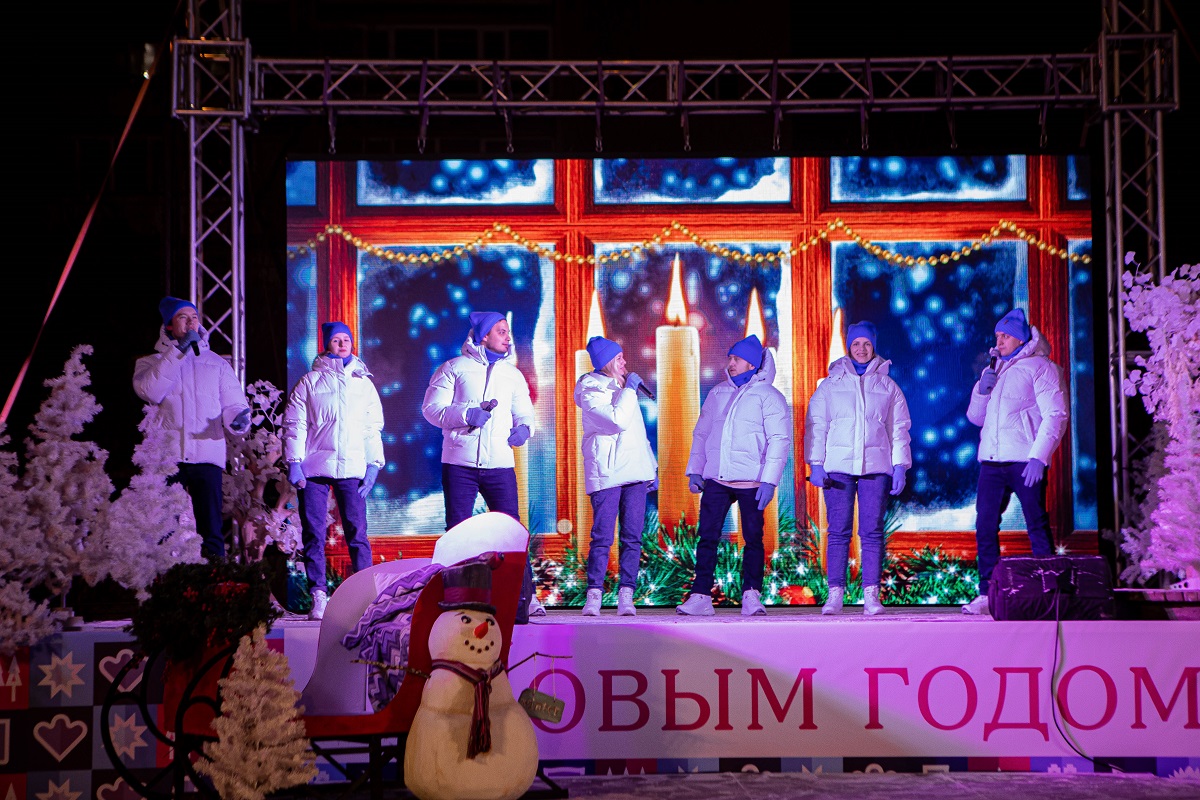 Артисты на ходулях, ростовая кукла снеговика и другие персонажи прогуливались в этот вечер по площади. С ними с удовольствием фотографировались дети и взрослые.