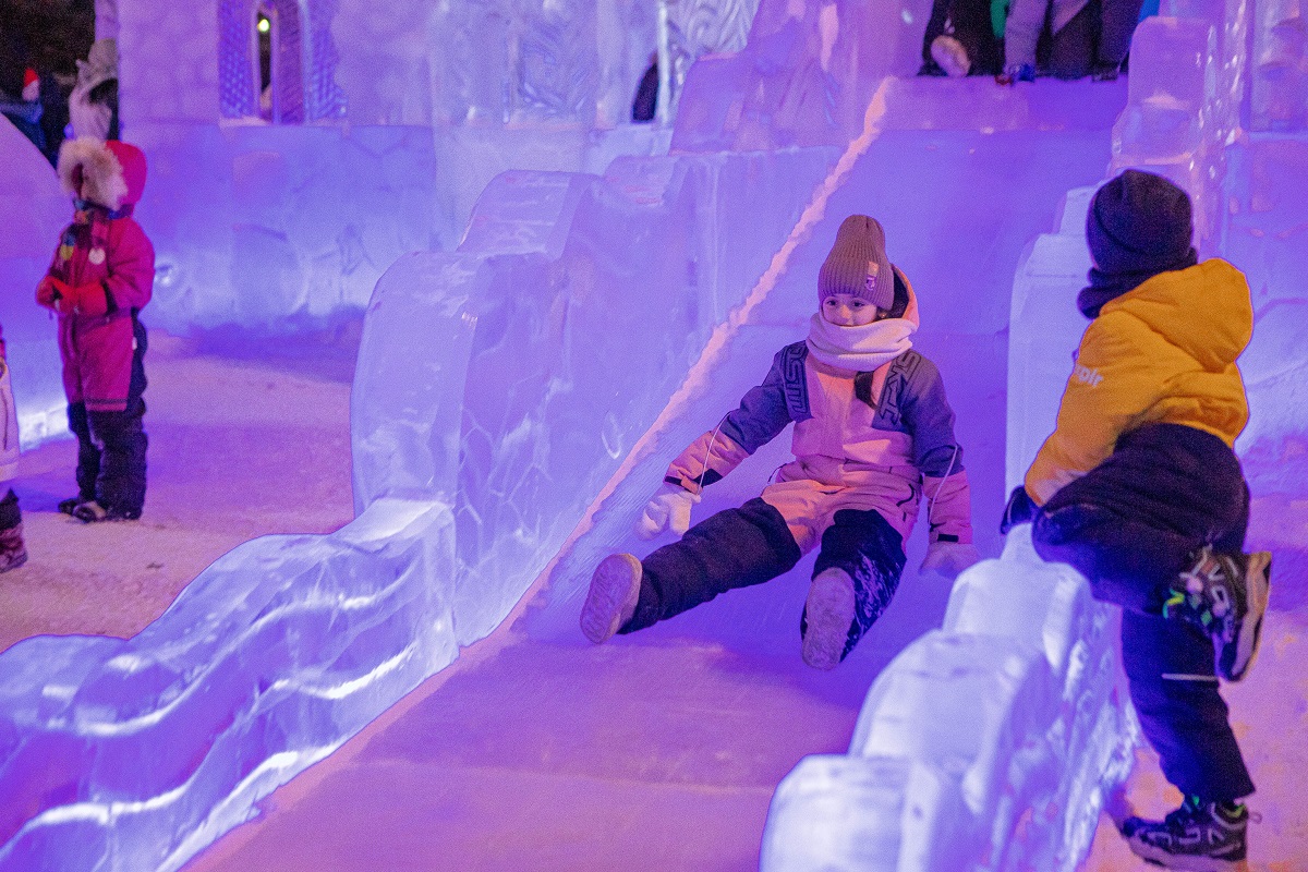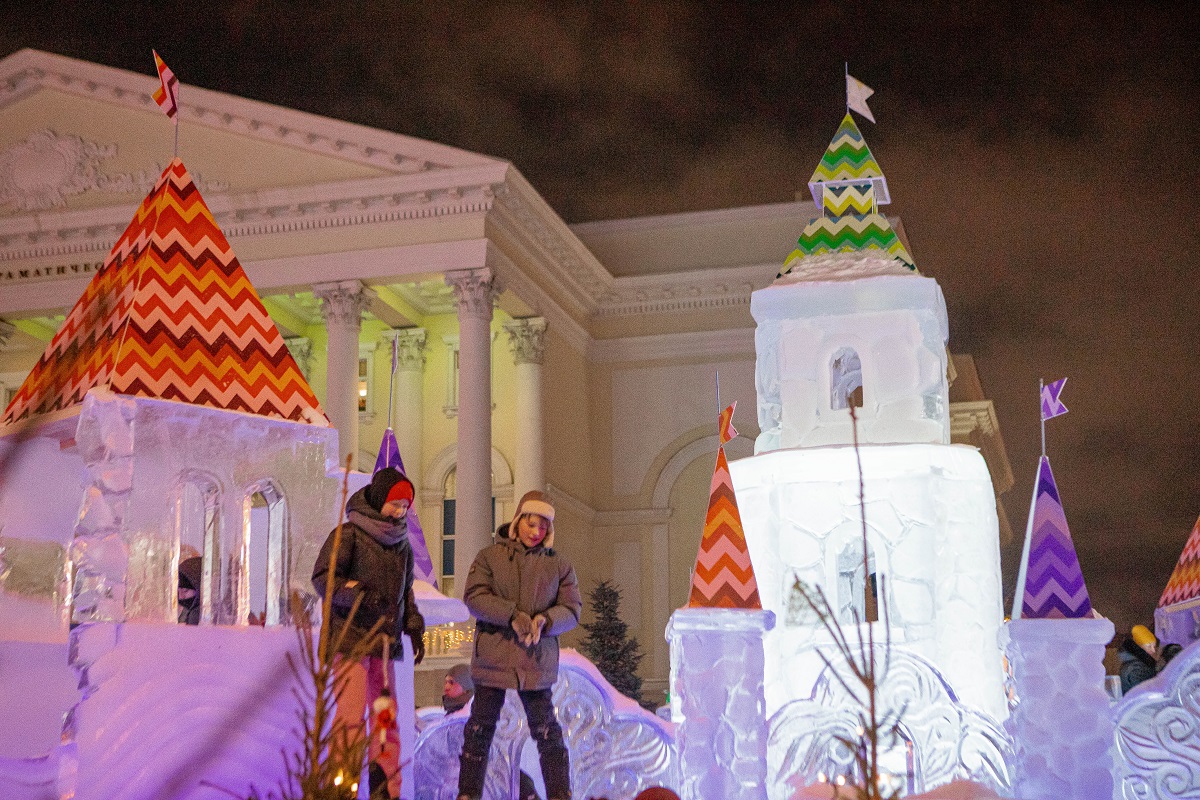 Отдельное место развлечений — ледовый городок. Здесь же можно прокатиться на горках — их десять.