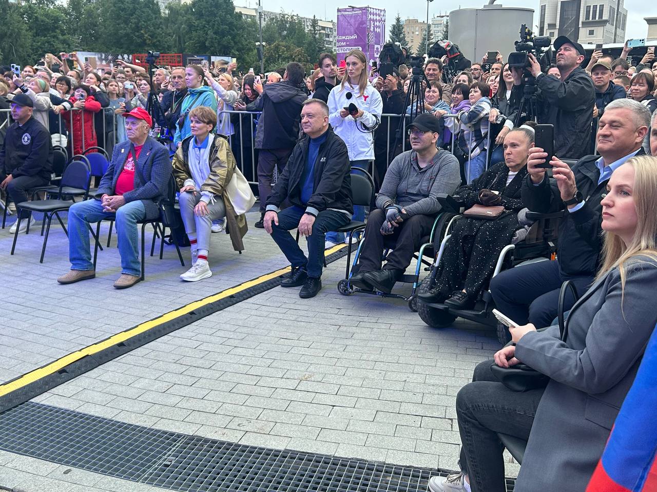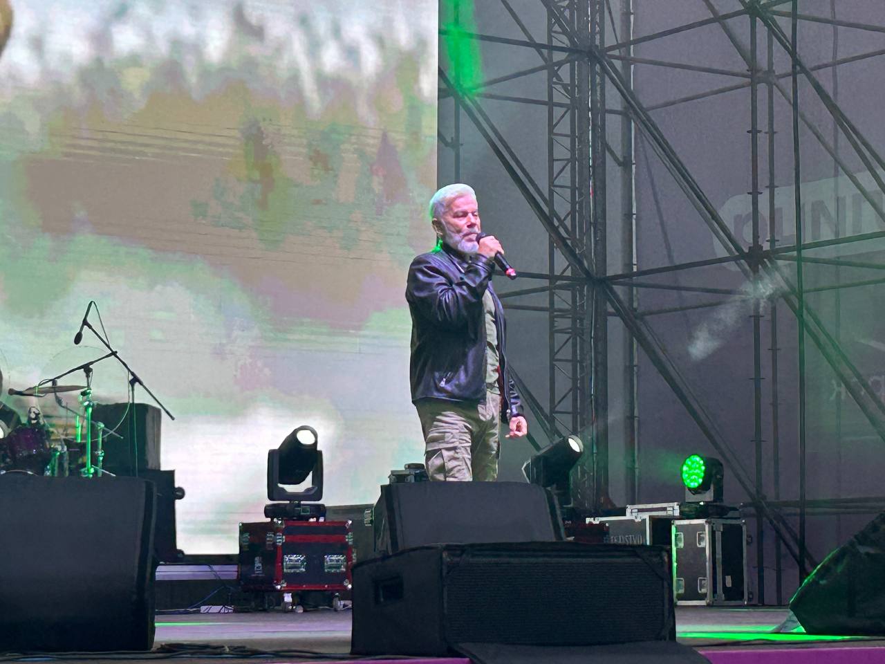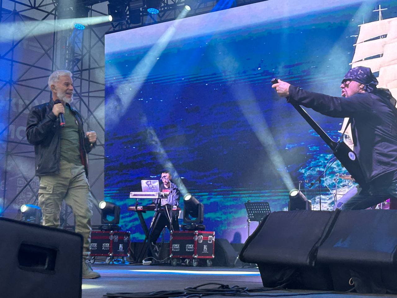 Олег Газманов вышел на сцену с первой песней «Русский мир». Он тепло поприветствовал публику и поздравил с праздником. После нескольких песен он вместе с Максимом Афанасьевым вручил участникам СВО три квадрокоптера.