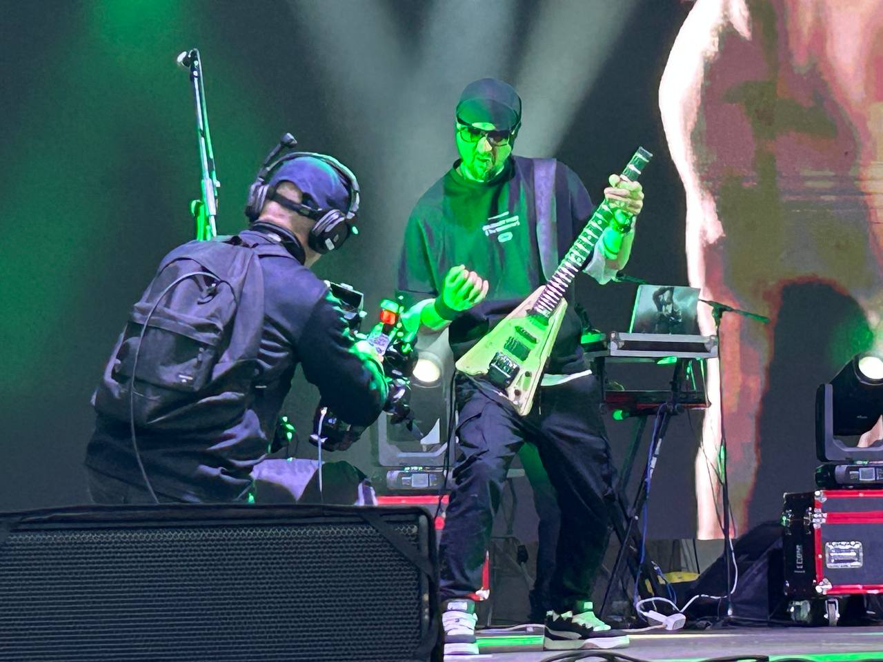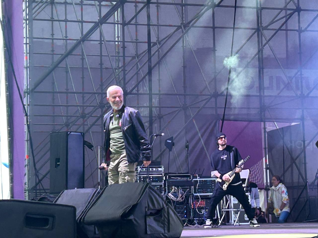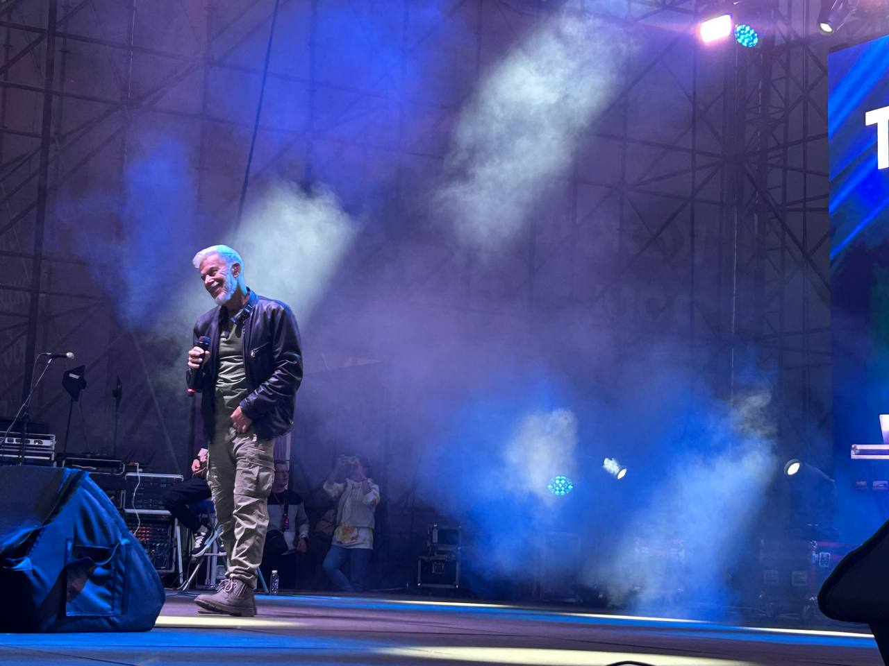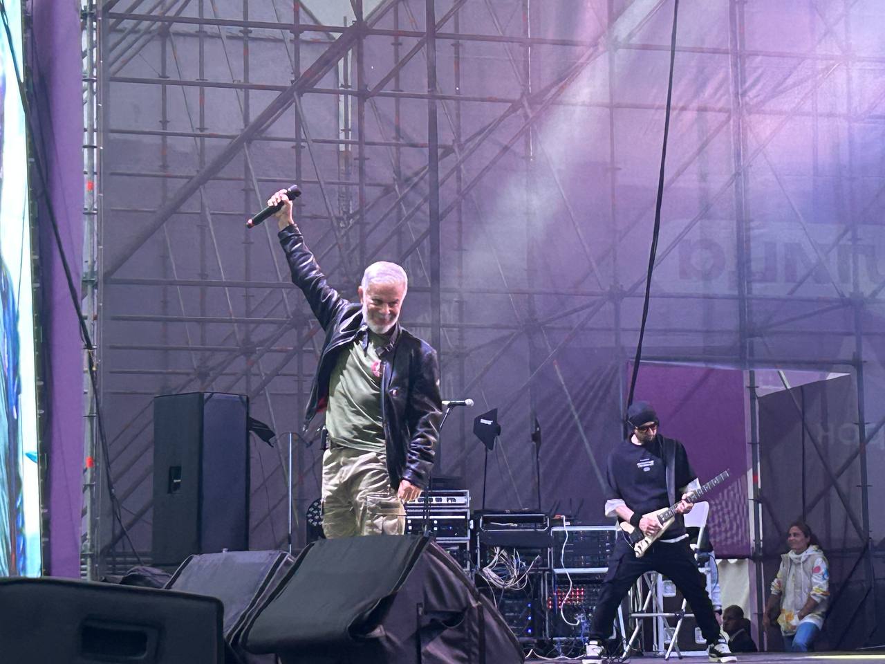 Олег Газманов вышел на сцену с первой песней «Русский мир». Он тепло поприветствовал публику и поздравил с праздником. После нескольких песен он вместе с Максимом Афанасьевым вручил участникам СВО три квадрокоптера.