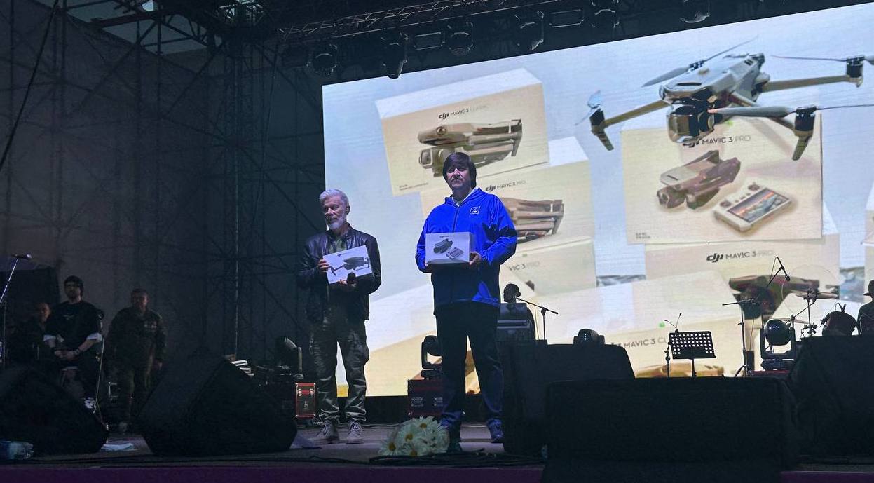 В свою очередь Олег Газманов объявил, что подарит еще один дрон от себя. «Я тоже слышал об этой акции перед тем, как сюда прилететь. Поэтому хочу сказать, что очень много моих птичек, дронов, уже летает там. Я присоединяюсь к этой акции, и свой дрон я тоже передаю вам, ребята», — обратился он к бойцам.
