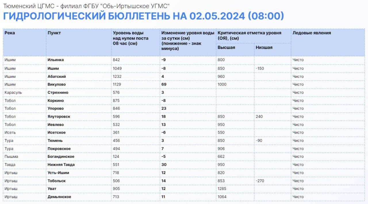 В Тюмени река Тура достигла отметки в 456 сантиметров, в Покровском — 494 сантиметра. Прирост за сутки — 3 и 7 сантиметров соответственно.