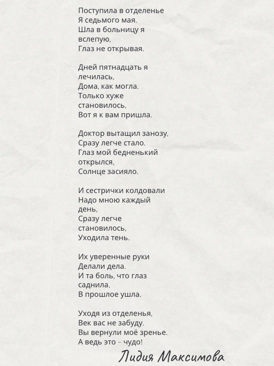 «Врач-офтальмолог Надежда Кубарева сразу же меня осмотрела и извлекла из глаза колючку от репейника, — рассказала Лидия Петровна. — После этого было десять дней интенсивного лечения: уколы в глаз, внутримышечные инъекции, мази и антибиотики. Сейчас уже всё позади. Я очень благодарна больнице Ишима за то, что сохранили мне зрение!»