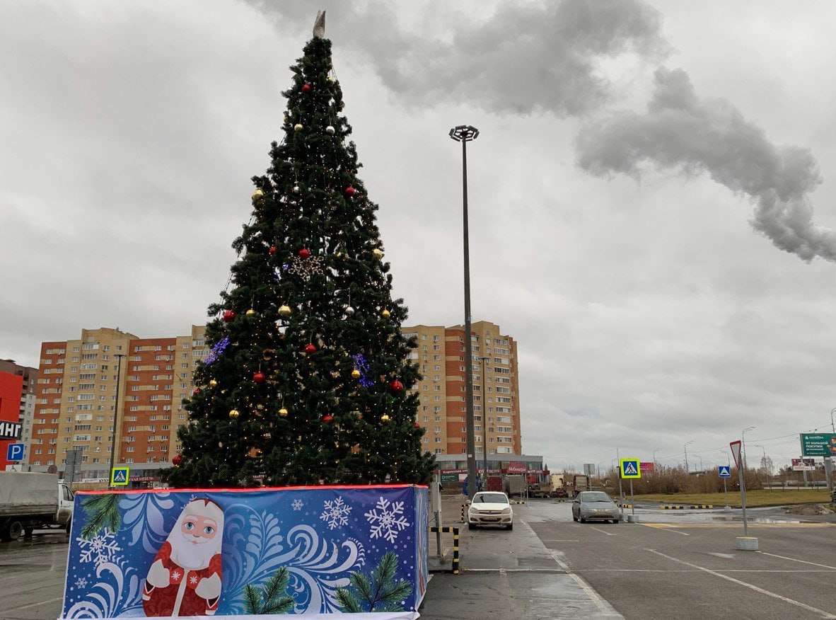 Тюмень начали украшать к Новому году. Первую елку в областном центре установили на парковке у торгового центра на улице Широтной, сообщает информационный центр правительства региона.