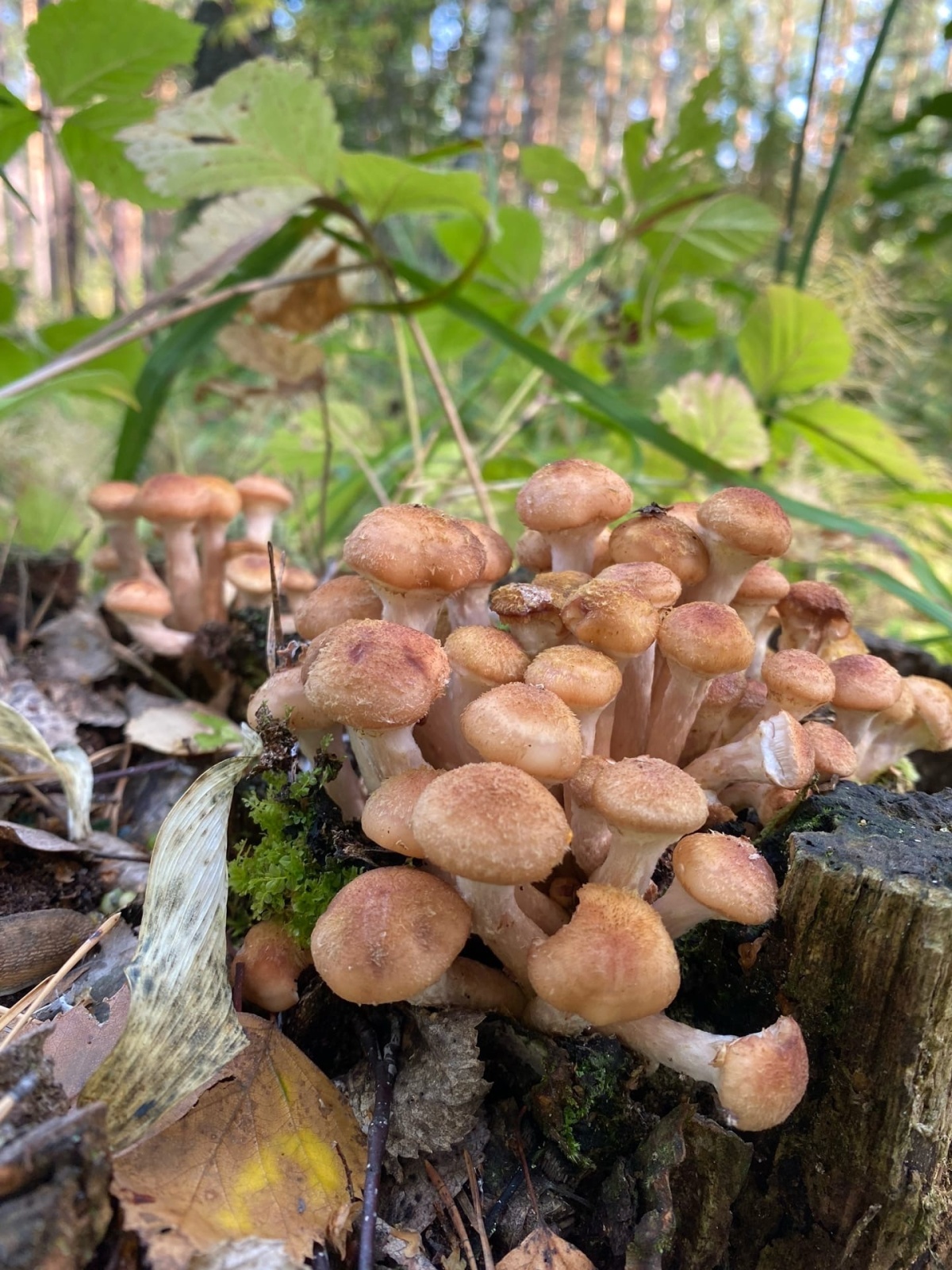 Лес порадовал и тюменку Наталью Жеребову. Заехав на разведку в лес по Ирбитскому тракту, она наткнулась на россыпи опят на старых пнях.