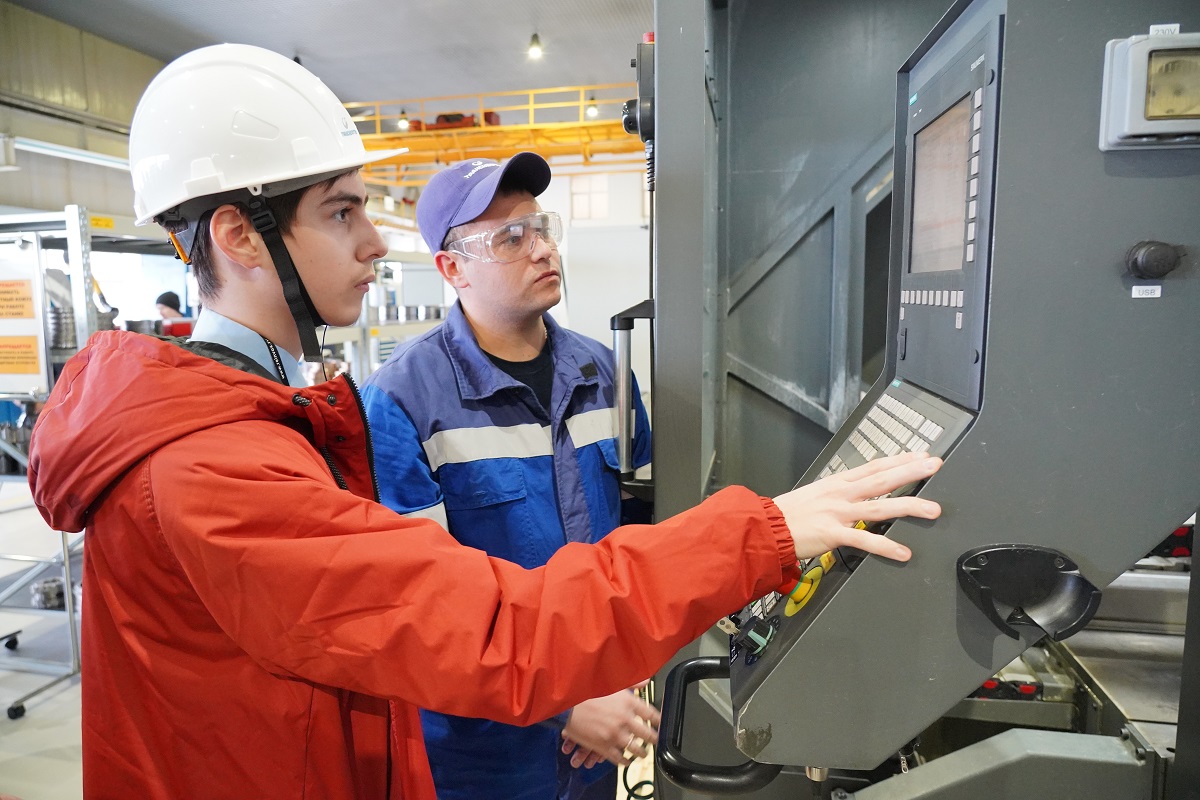 Старшеклассников постарались погрузить в профессию. В ходе экскурсии они примерили средства индивидуальной защиты и попробовали самостоятельно выточить деталь.