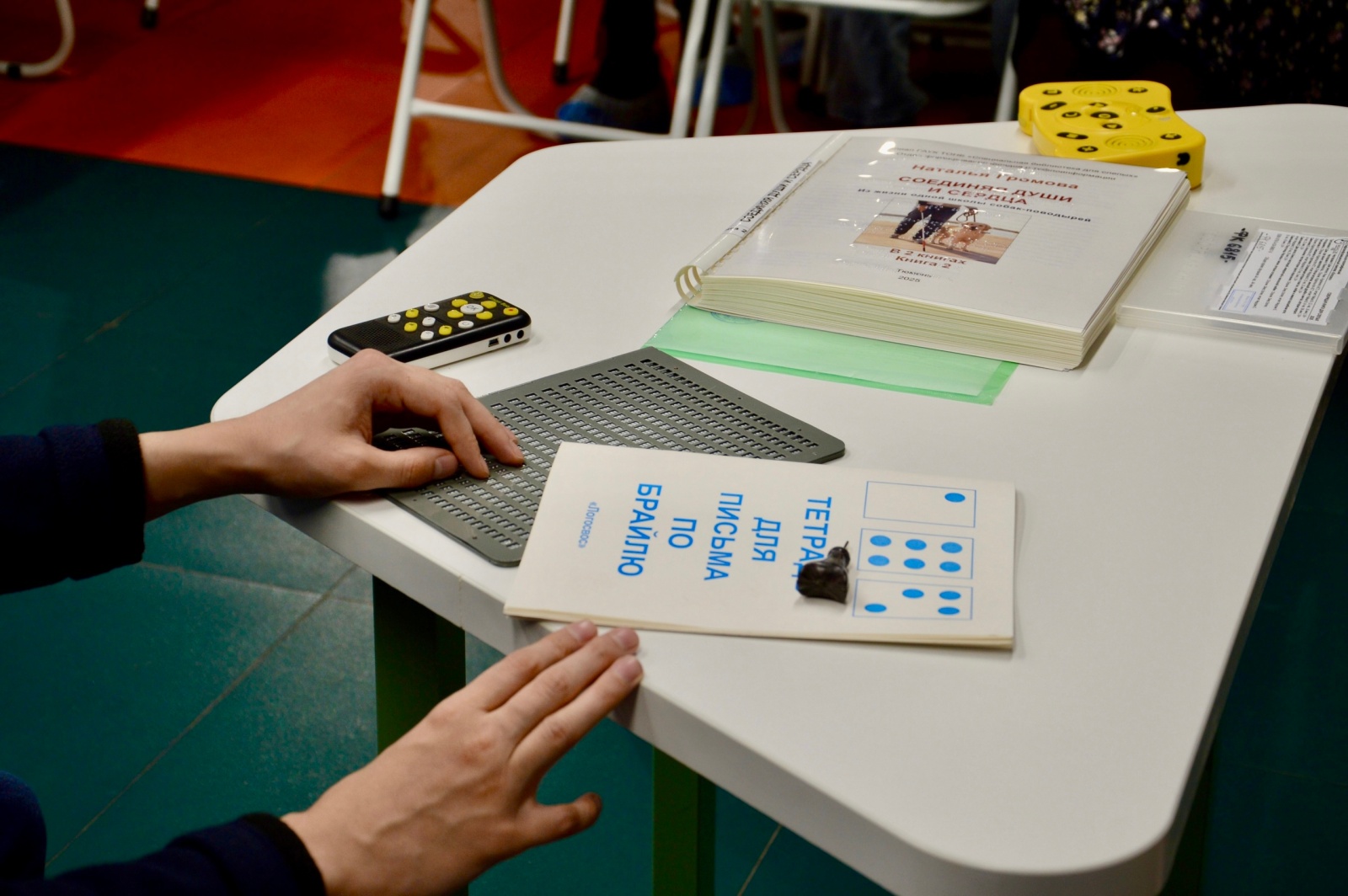 Ребята познакомились с сотрудником Специальной библиотеки для слепых Романом Гармановым и представителями Тюменской областной организации Всероссийского общества слепых Борисом Халиным, Юлией Могильниковой и Иваном Пищулиным. Каждый поделился своей историей.