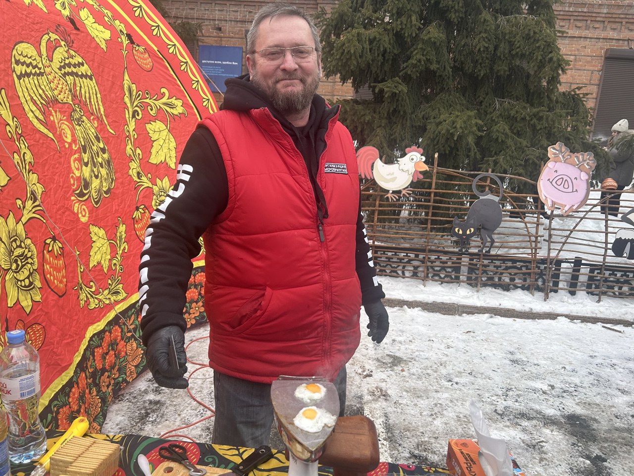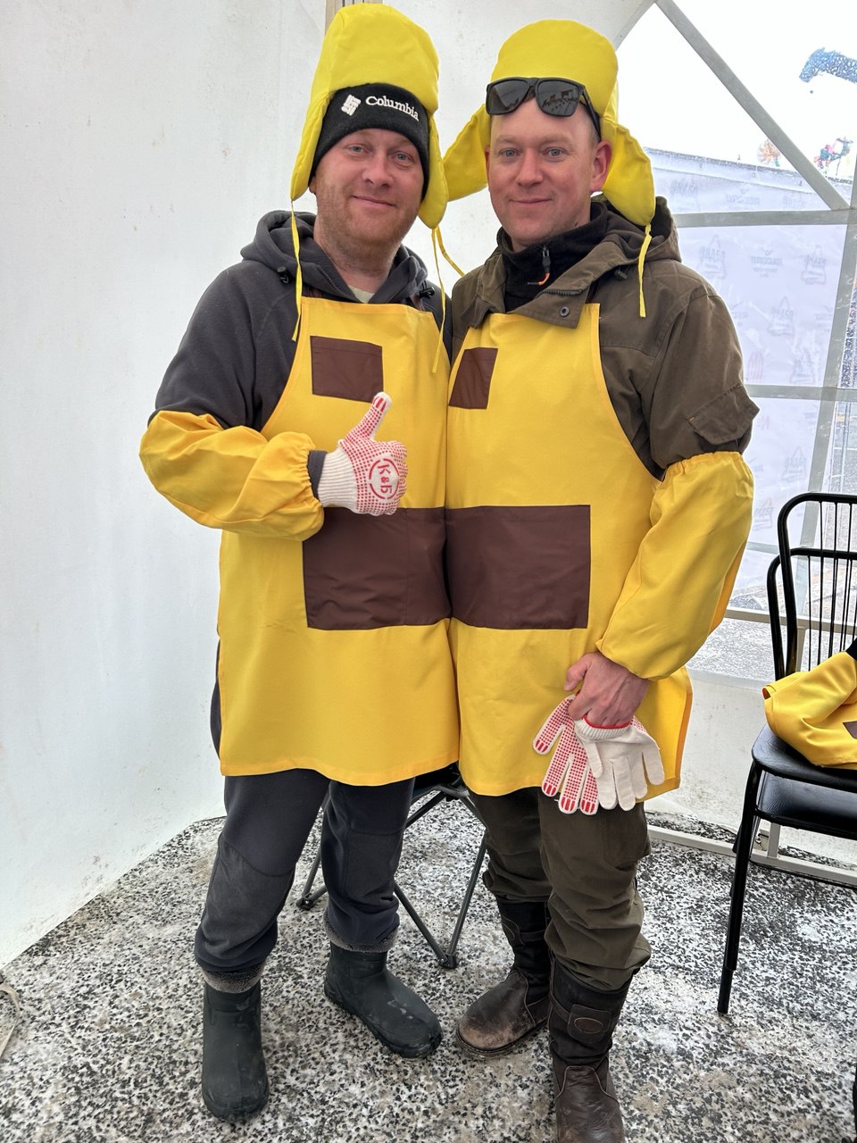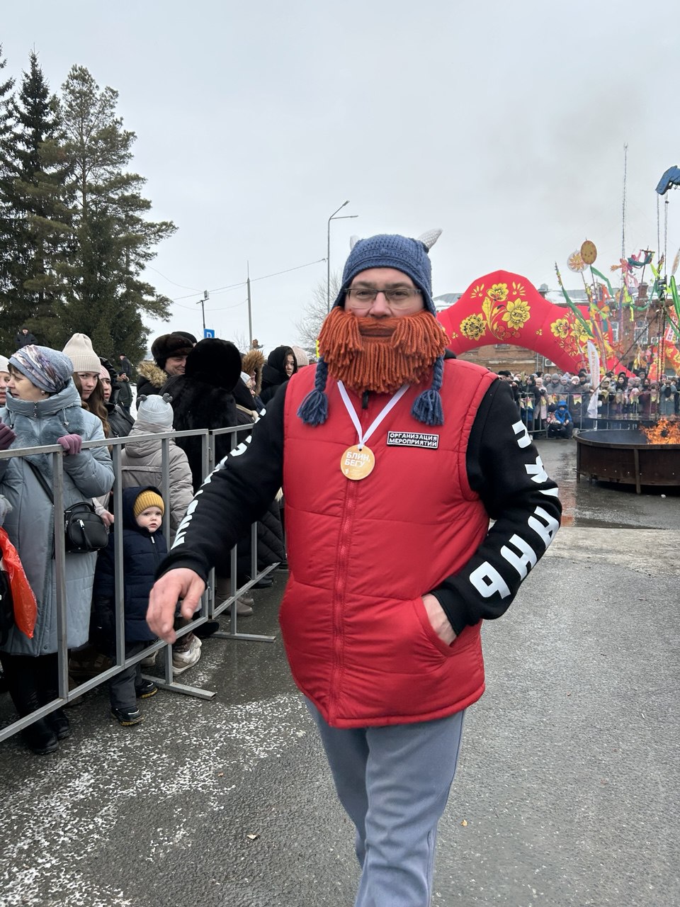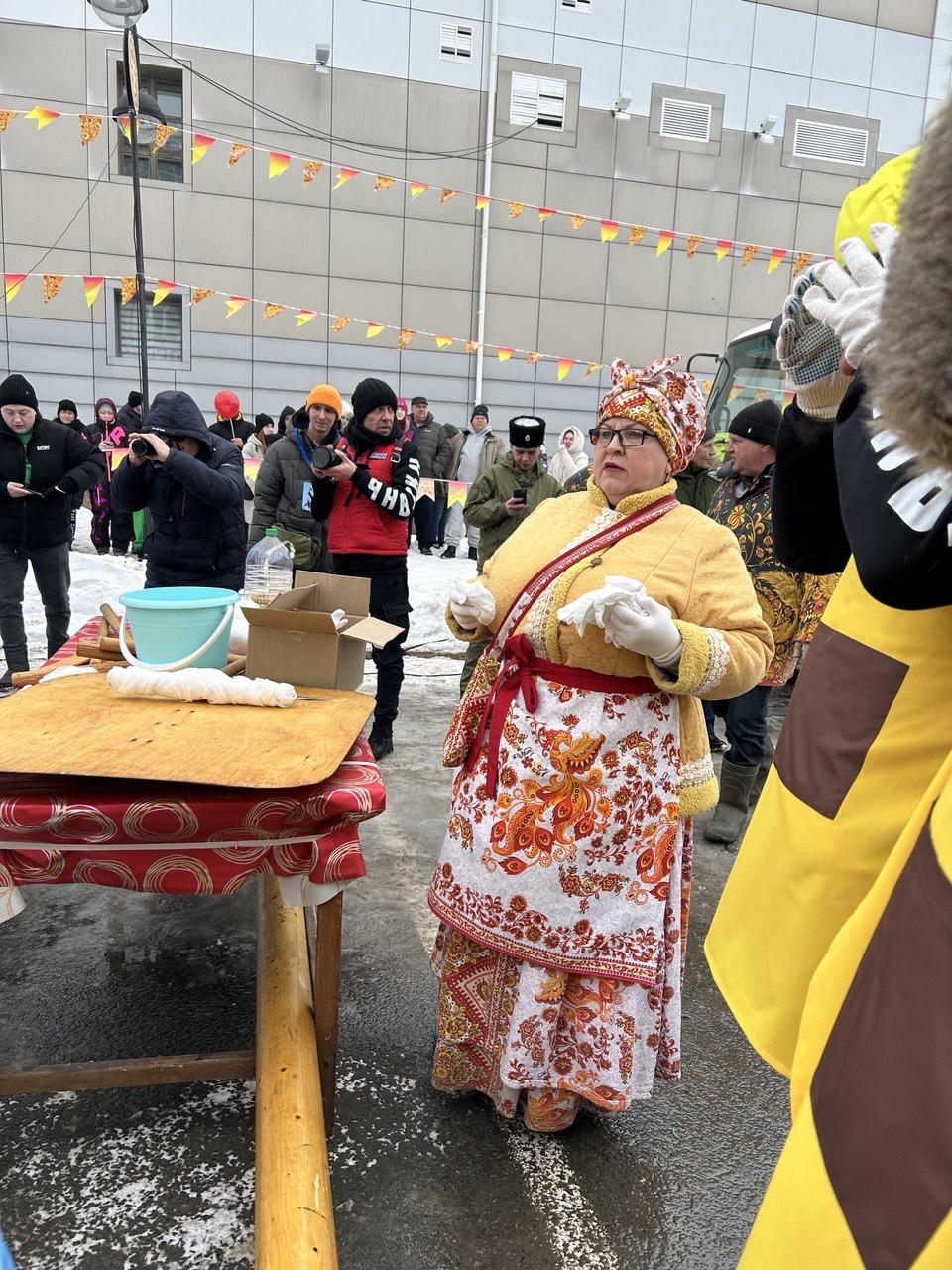 Далее к огню вышли тюменская сборная из представителей МЧС и компании «Этажи» и команда из Губкинского (Ямал). Блины пекли так же по очереди. Тюменцы подошли к разработке рецепта блина с креативным подходом — взяли два самых успешных рецепта прошлых лет, «скормили» нейросети, и та выдала усредненный рецепт. К слову, результат вполне оправдал ожидания — блин получился довольно крепким, но все же в последний момент при перевороте не выдержал и развалился на большие куски. Зато, пожалуй, оказался самым нежным на вкус, хоть и местами недопеченным.