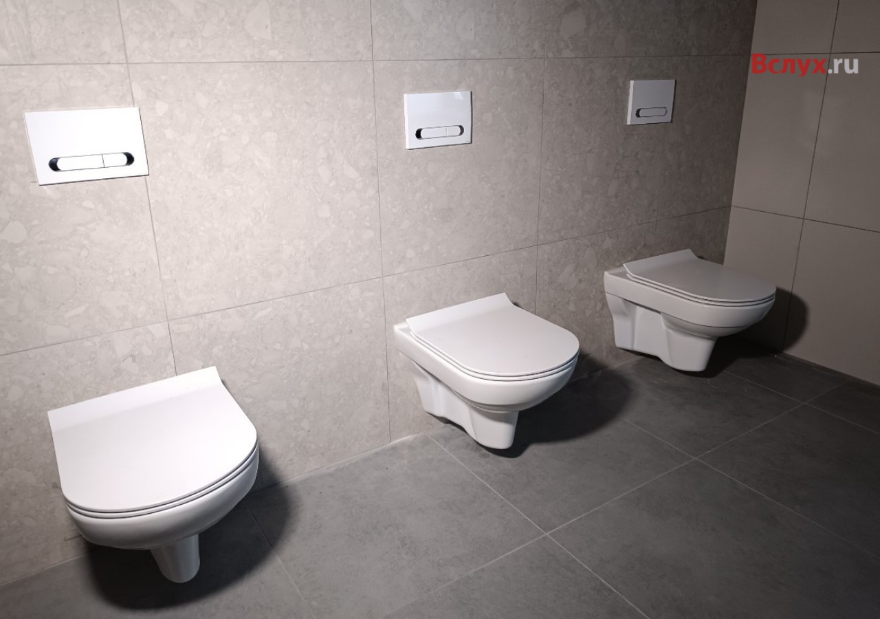 В классах установлены датчики, которые автоматически регулируют освещение. Во время экскурсии по строящейся школе удивили санузлы: раковины в искусственном камне, унитазы с инсталляцией (сливные бачки встроены в стену). Осталось сделать кабинки.