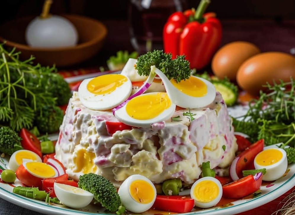 Классический рецепт салата оливье включает соленые огурцы. Исследования и кулинарная литература, включая работы В.В. Похлебкина, подтверждают, что именно они придают этому блюду характерный вкус и текстуру.