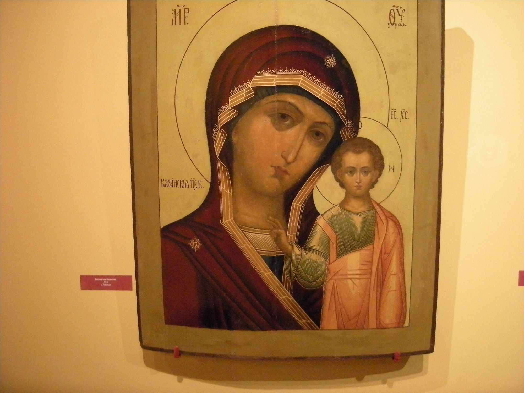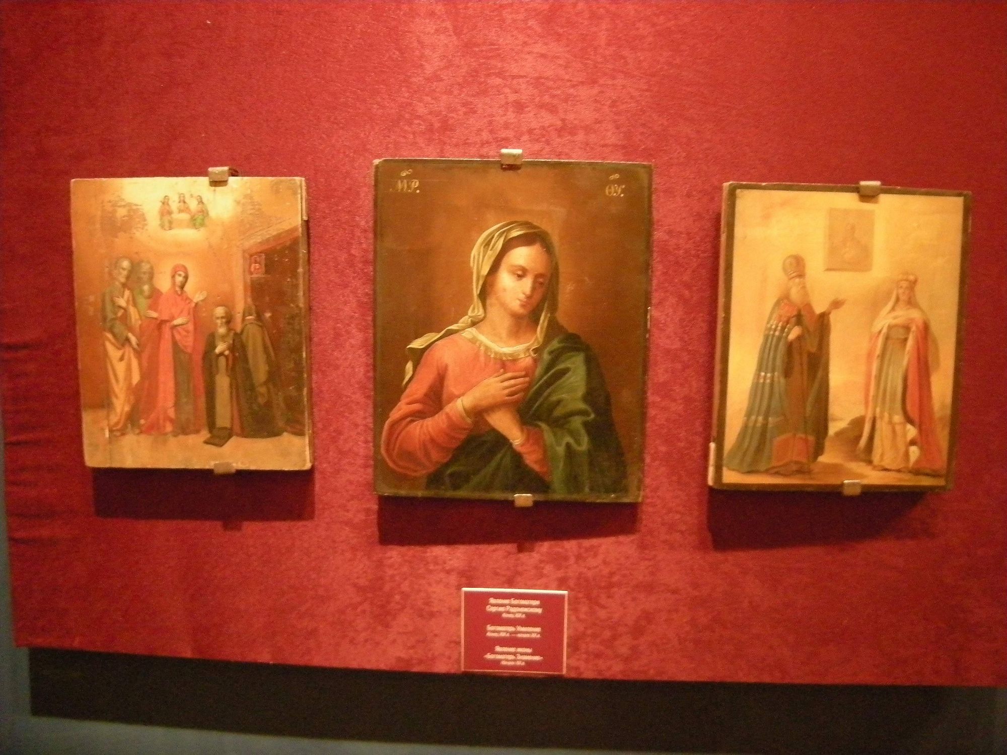 Все иконы вообще можно разделить на богородичные, хрестоматийные и иконы в честь святых. Больше всех на выставке представлено богородичных икон.