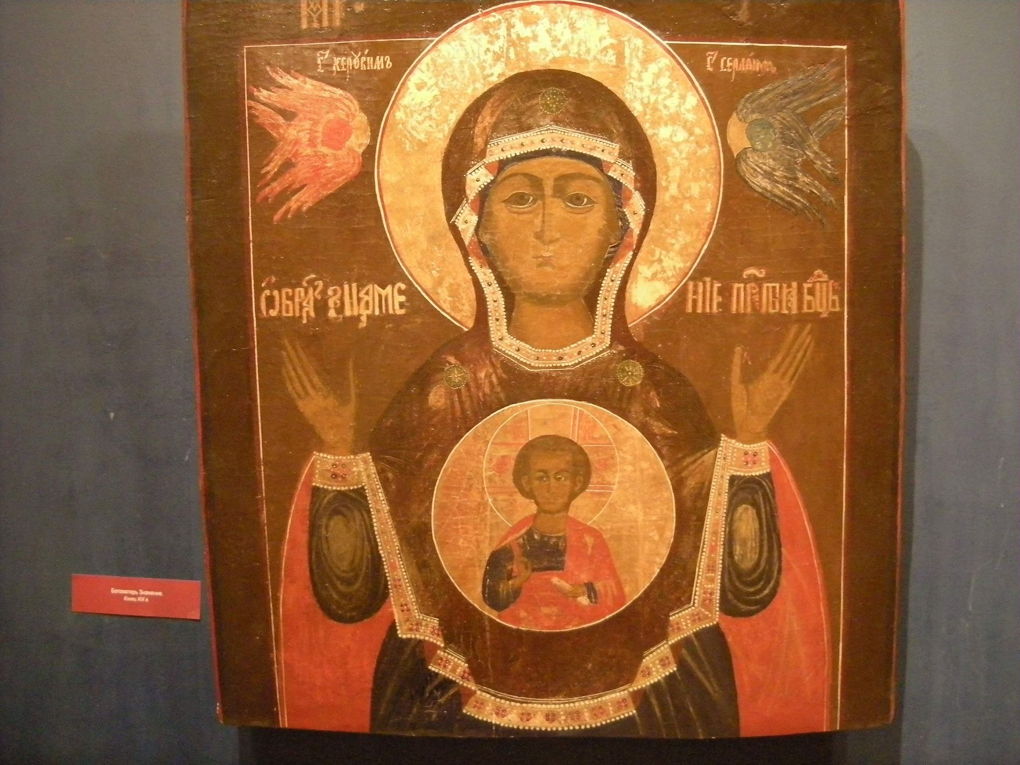 В Тюменской области развивалась московская школа иконописи, которую «насаждали» заезжие новгородские купцы. Их покровительницей была Богоматерь Знамения, которая в 1169 году спасла Новгород от нашествия суздальцев. Приезжая торговать в Тюмень, купцы на удачу ставили часовни с привезенным иконостасом. Так икона Богоматери Знамения появилась в Тюмени, а в 1624 году ее для нашего Знаменского собора написал Спиридон Иконников, от которого потом пошла целая династия тюменских купцов-иконописцев.