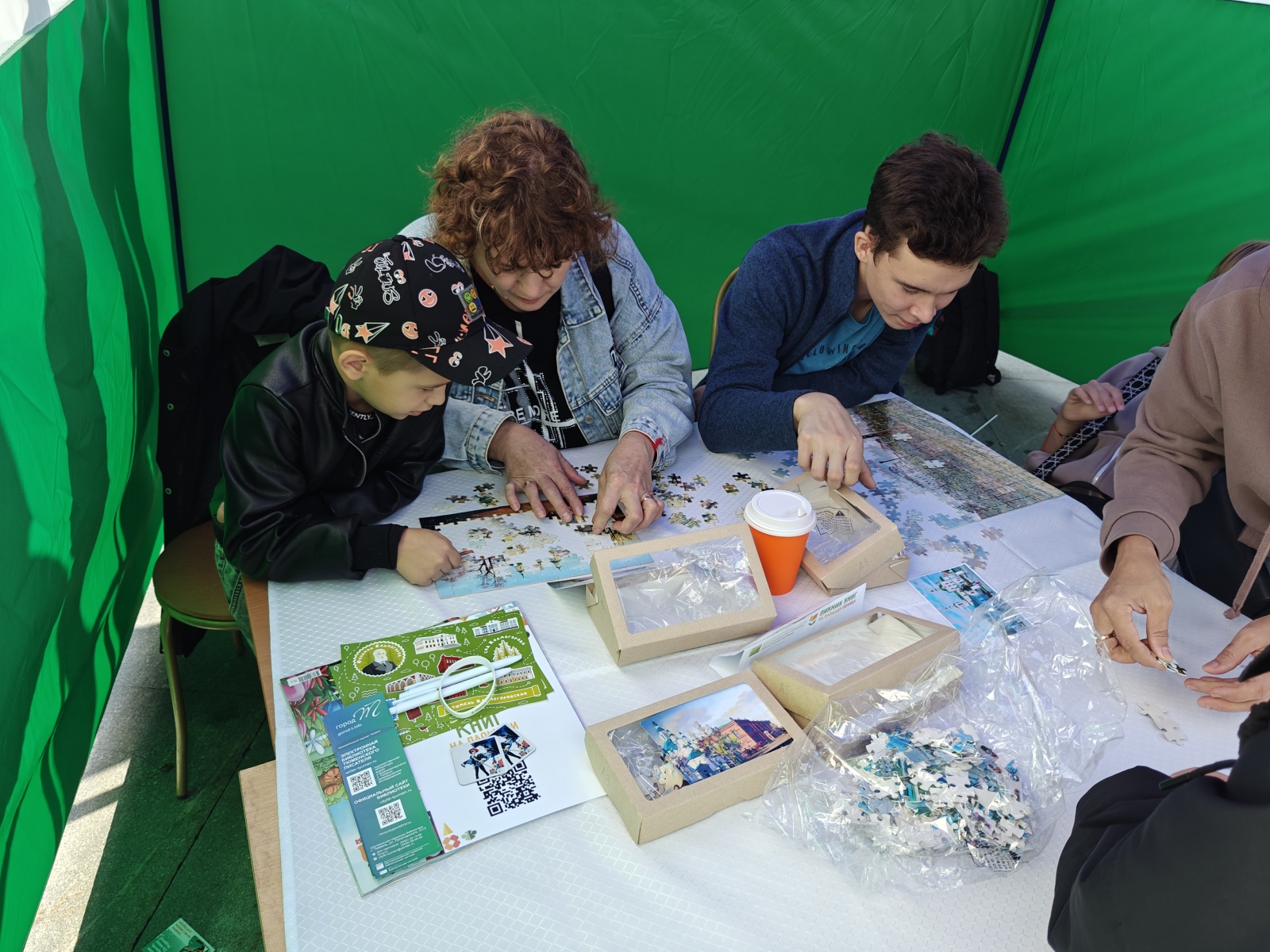 В отдельной палатке можно пособирать пазлы или сыграть в уже ставшую знаменитой «Монополию» по Тюменской области: