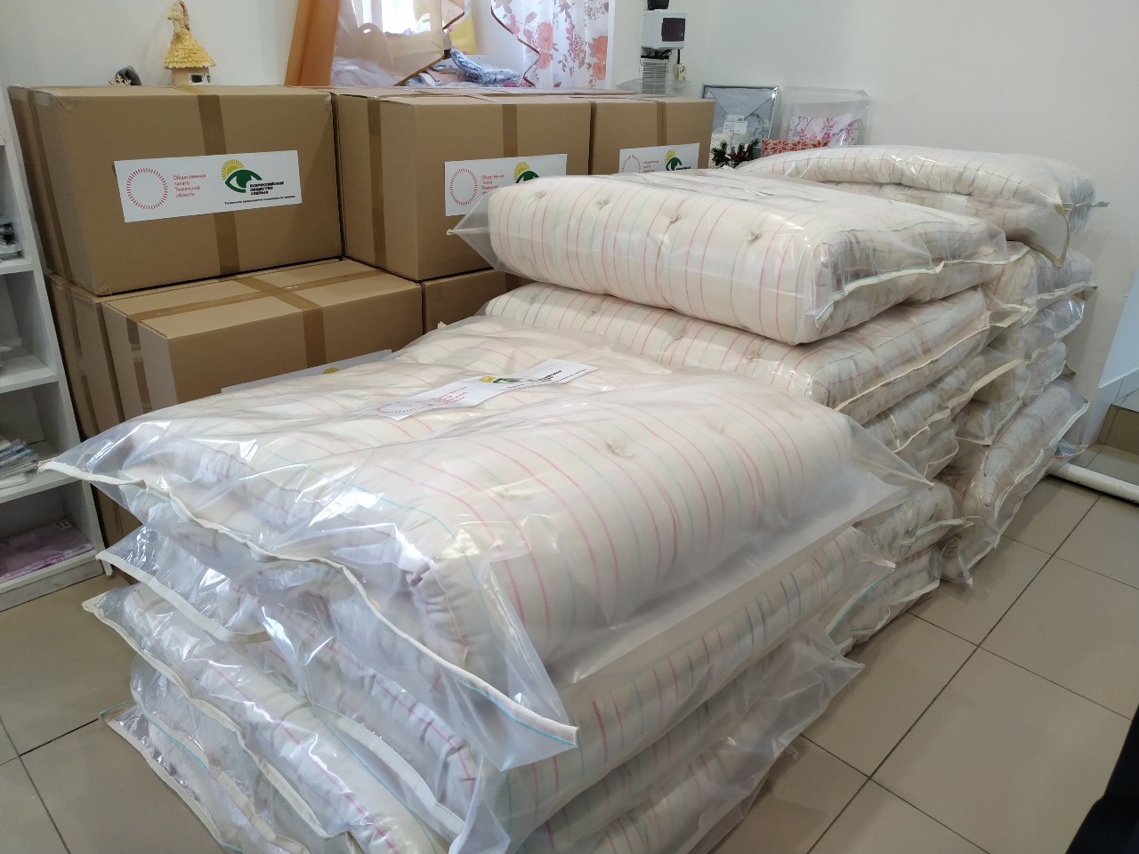 При поддержке общественной палаты работники предприятия подготовили комплекты из матрасов, одеял, подушек, постельного белья.