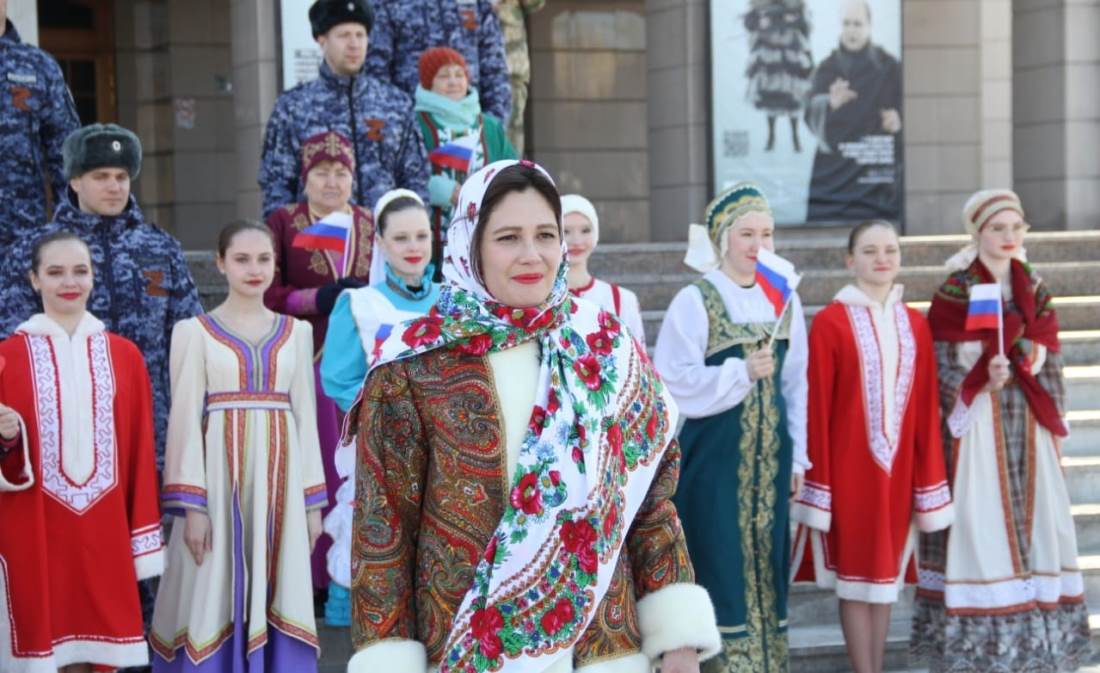 «Не случайно выбрано это место. Наши земляки более 400 лет самоотверженно стоят на защите Отечества при любой угрозе. Мы едины всегда и во всём, потому что русский дух в нас с детства. Мы воспитаны на примерах поколения победителей, наших героических прадедов, дедов и отцов. На сцене драматического театра выступают творческие коллективы — представители разных культур. Они демонстрируют эпохи российской истории, передавая в своих ролях — любовь, мужество, самоотверженность и преемственность поколений», — отметил начальник территориального управления полковник полиций Евгений Федоткин.