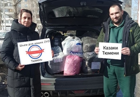 Тюменский казак Андрей Ростовщиков пояснил «Вслух.ру», что в сборе гуманитарного груза в зону СВО принимали участие несколько организаций. Помимо «Шьем для наших ZVO Тюмень» это движение «ТЮМЕНЬ ПРАВОСЛАВНАЯ — ДОНБАССУ», Ассоциация женщин Тюмени при ДОСААФ, тюменский фонд «Путевка в ЖИЗНЬ», «Тюмень. Шьем и вяжем для наших!», «КАТЮШИ Своих не бросаем!», тюменская гимназия №5, ВПО КРЕЧЕТ и другие. В данный момент бойцам кроме одежды и экипировки в зоне СВО нужны влажные салфетки, продукты питания, обвесы для ВОГ, которые тюменские казаки делают сами.