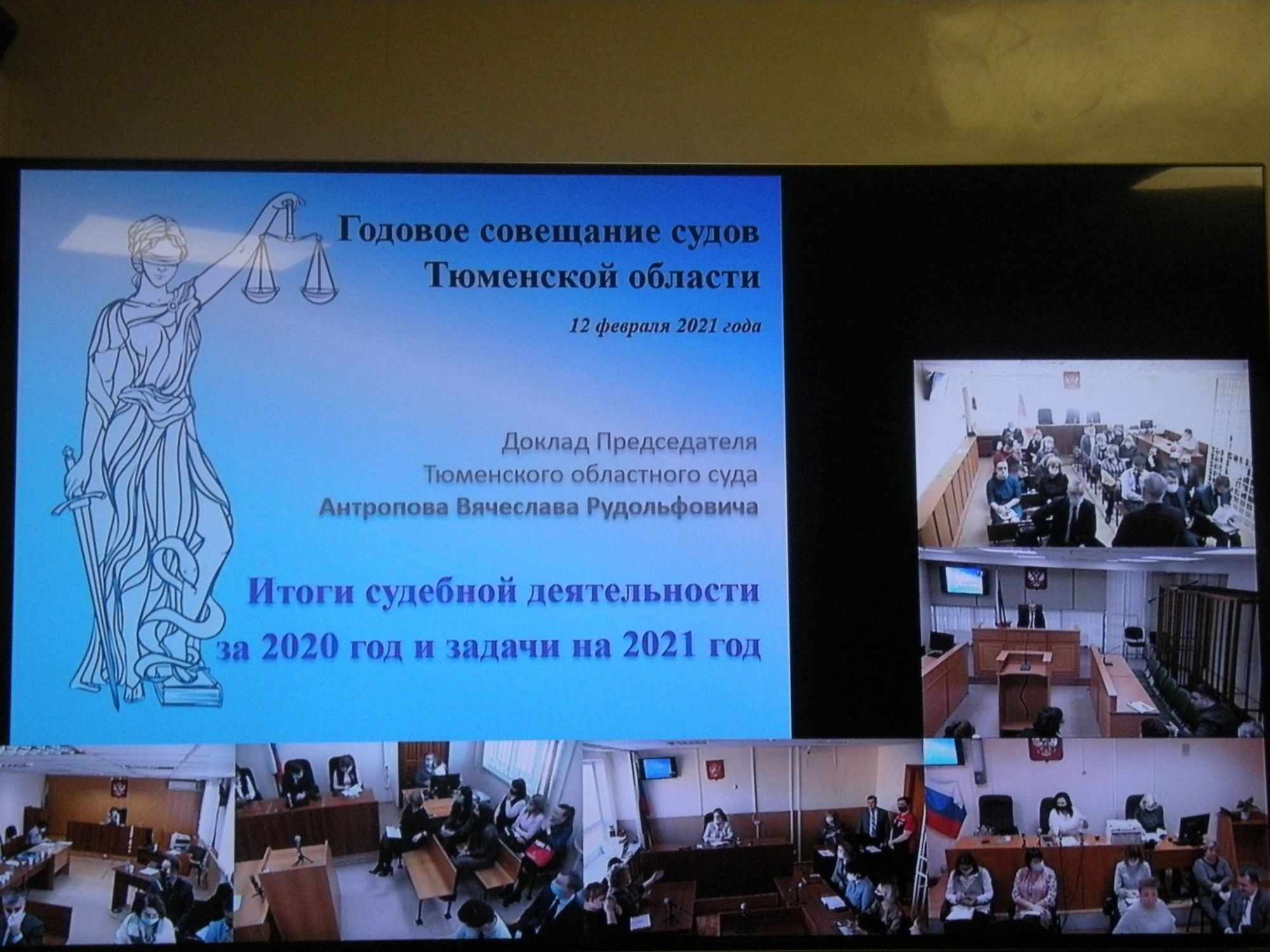 Соблюдая меры безопасности в условиях вирусной пандемии, сегодня тюменское правосудие впервые в режиме видеоконференцсвязи подвело итоги своей деятельности в минувшем году. Трансляция из Тюменского областного суда велась в специально оборудованные залы районных и городских судов.