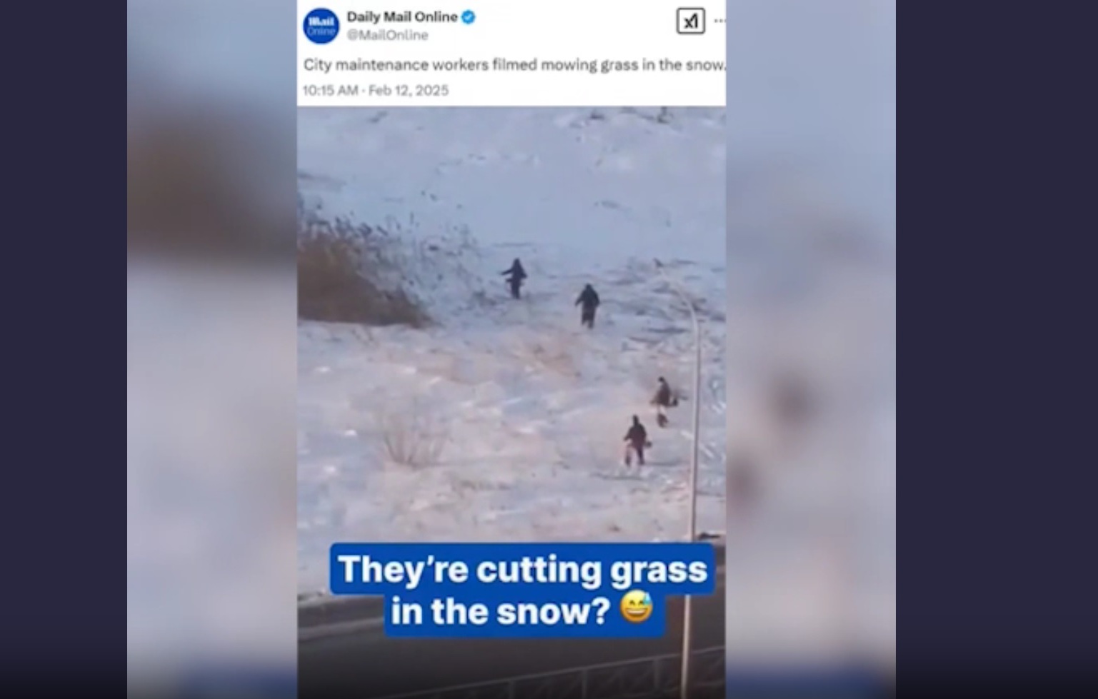 «Британская пресса прославила на весь мир тюменских рабочих, которые вышли косить траву, но есть нюанс. На видео коммунальщики, вооруженные электрическими триммерами, убирают траву на фоне плотного февральского снега», — уточняет издание.