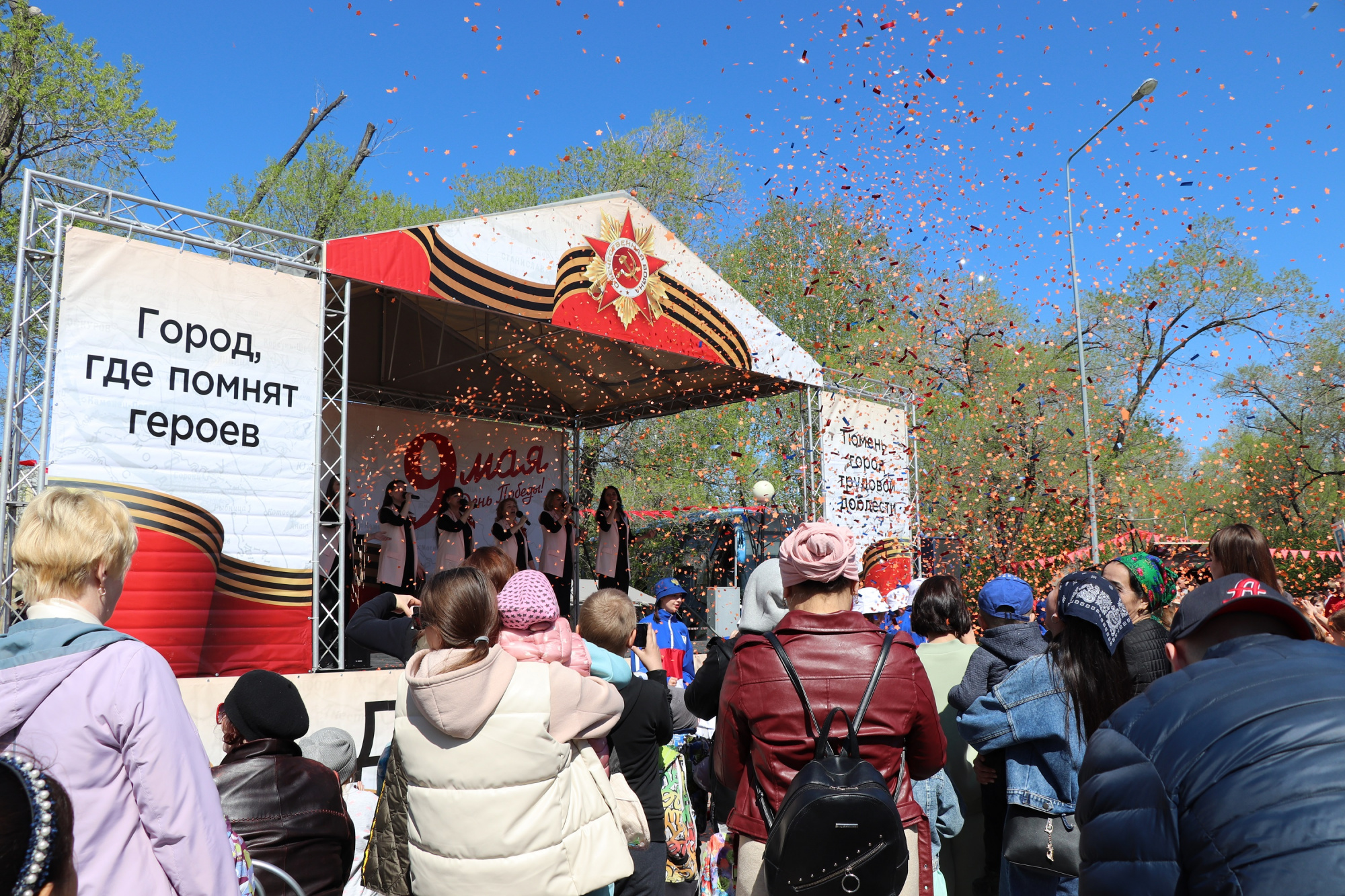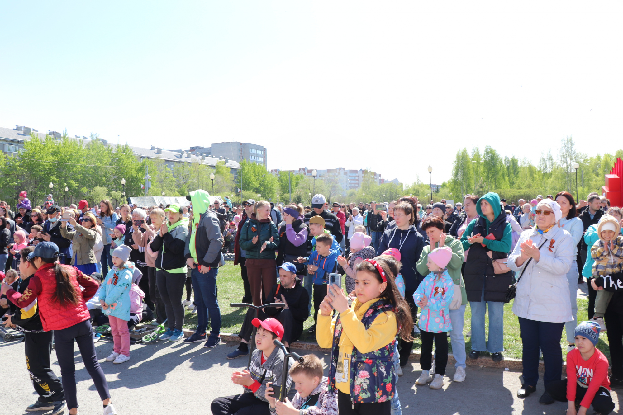 Две праздничные площадки в Комсомольском сквере и сквере Депутатов собрали сотни тюменцев, которые пришли вместе отпраздновать 9 Мая.