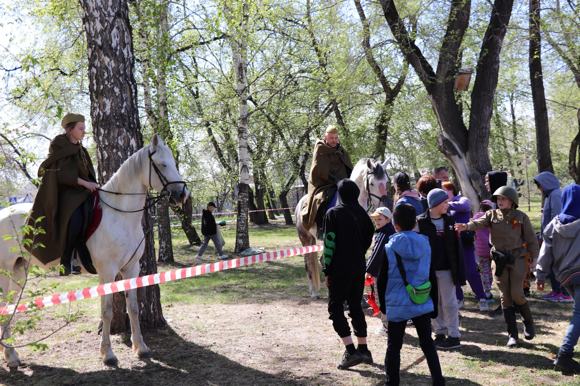 В Комсомольском сквере в центре внимания оказались участники интерактивных площадок «Собака — герой войны» и «Боевая конница», свое мастерство показали служебные собаки и мастера школы верховой езды. Самые активные гости праздника приняли участие в военно-спортивной игре «Лазертаг».