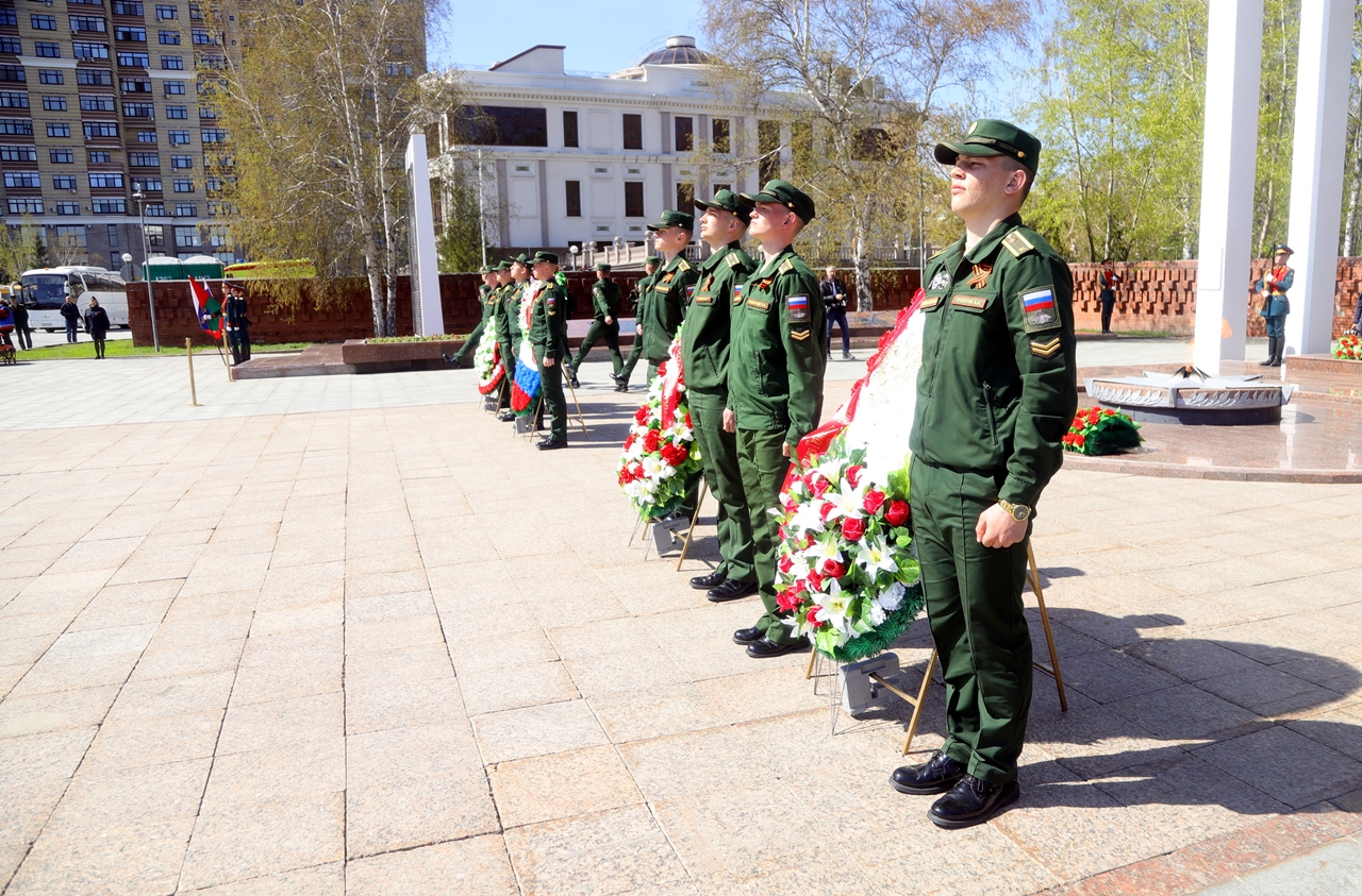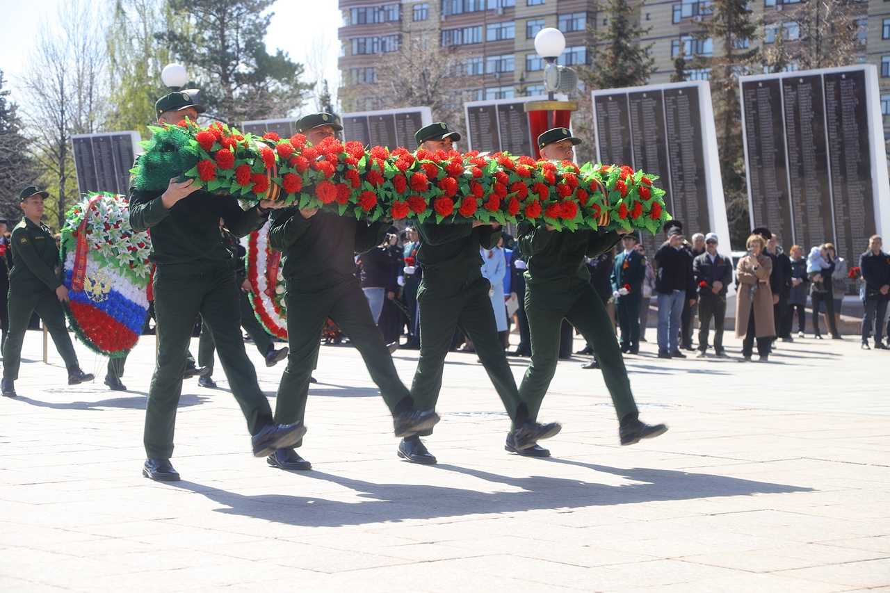 Завершили торжественную церемонию курсанты ТВИККУ, которые прошли маршем по площади, отдавая воинские почести героям.