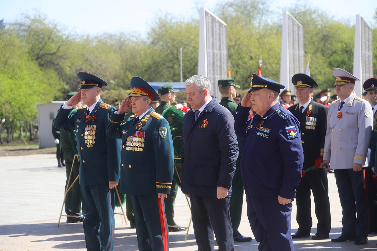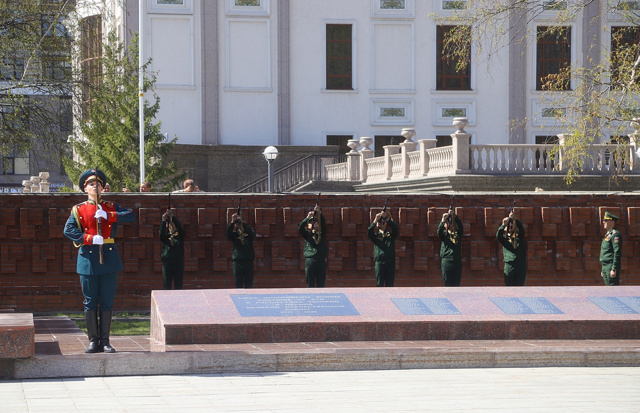 Торжественная церемония возложения цветов, гирлянд и венков состоялась в областном центре на мемориальном комплексе «Память». Церемонию открыла минута молчания, затем прозвучали символические три залпа в небо.