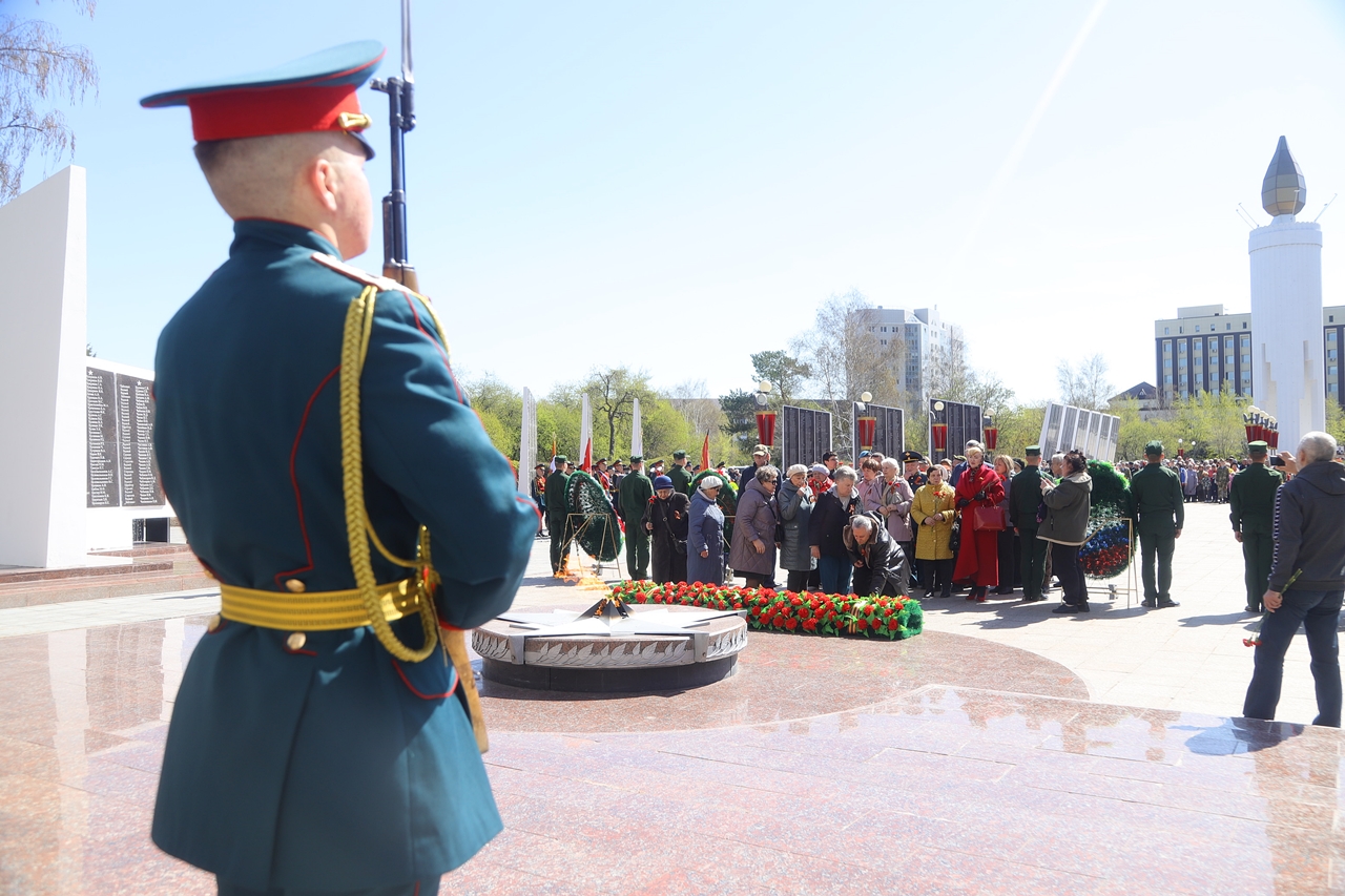 Десятки горожан пришли отдать дань памяти павшим в Великой Отечественной войне к вечному огню.