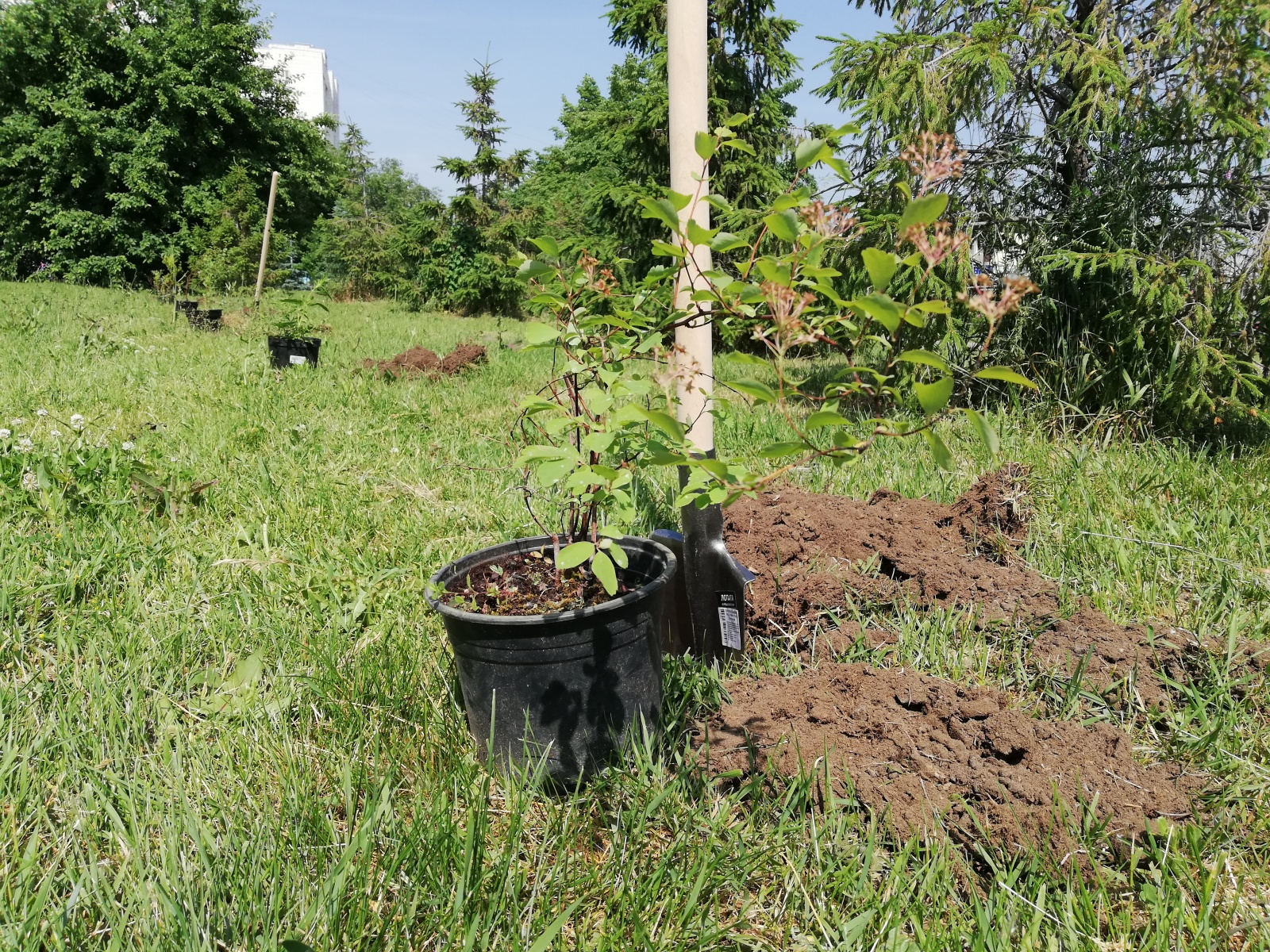 Участники высадили 40 саженцев декоративных яблонь и посеяли 40 семян сосны обыкновенной в честь героев тех лет.