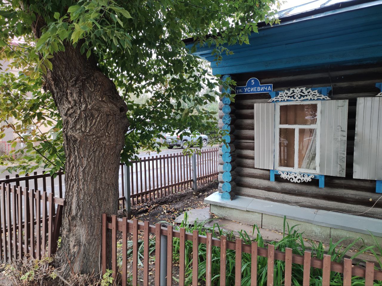 В настоящее время отгороженная от реки похожим на замок особняком № 7 на Пристанской (слева от него в торговом заведении купцов-пароходчиков Плотниковых находится штаб местных казаков) улица Усиевича начинается двухэтажным деревянным домом № 1 с обшитыми шиферными панелями стенами.