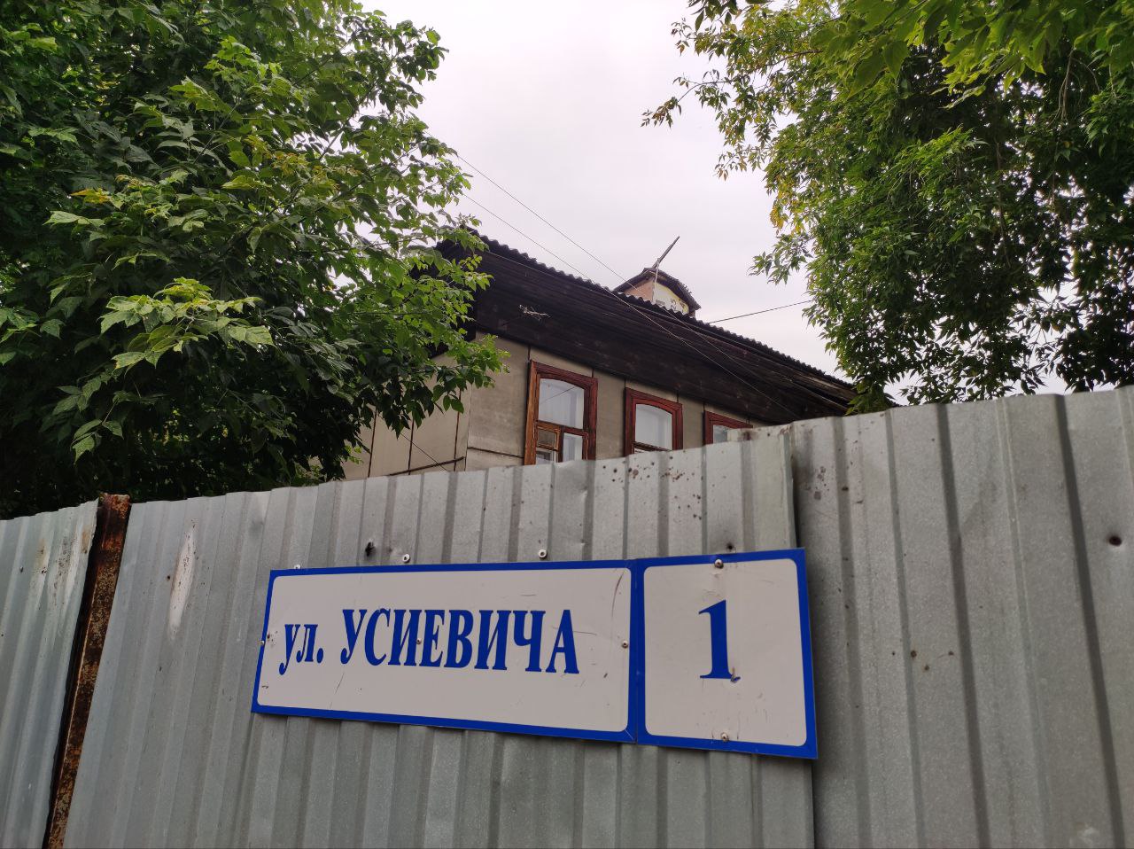 Нечетная сторона улицы Усиевича еще сохраняет облик старой Тюмени: частные дома предвоенной и послевоенной постройки. Дом № 13 продается: ворота заперты, а по номеру телефона на его стене никто не ответил.