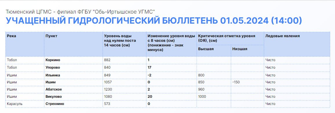 За последние часы река Ишим в селе Абатское поднялась еще на несколько сантиметров. По данным на 16 часов 1 мая ее уровень достиг 12 метров 31 см. Об этом в телеграм-канале сообщил губернатор Александр Моор.