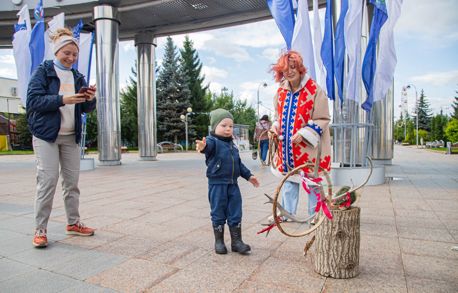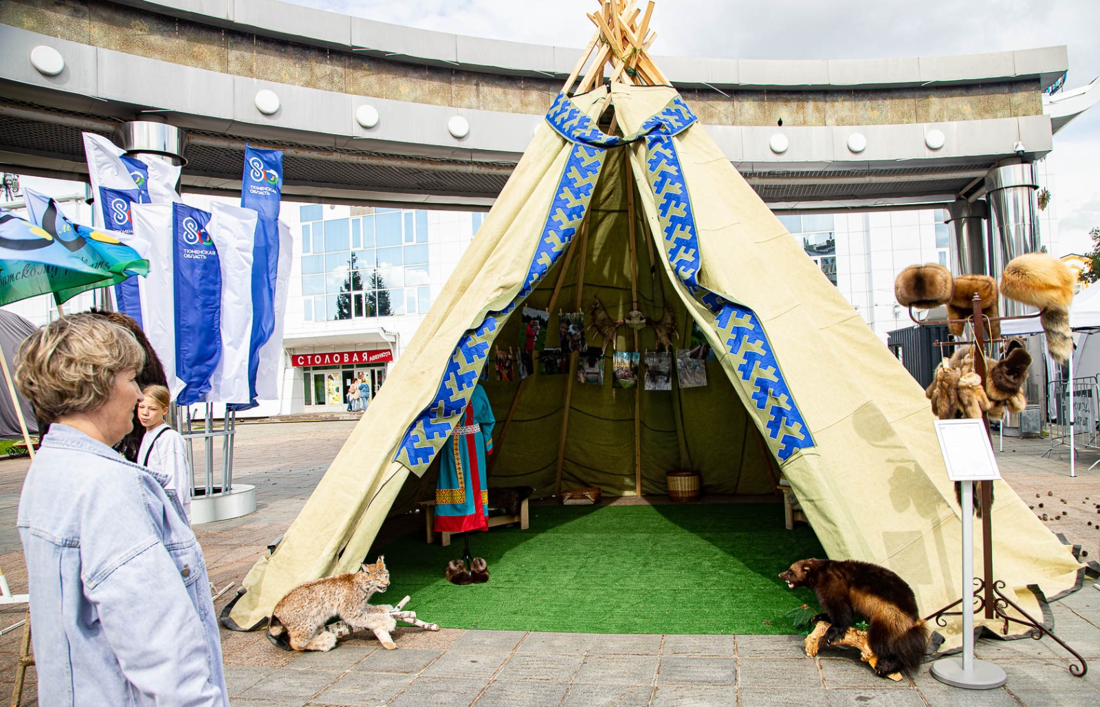 А еще тюменцы и гости города могут сфотографироваться в чуме, примерить меховые изделия и рюкзак из бересты, а также нарисовать открытку нефтью.