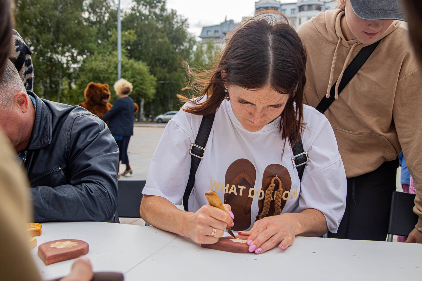 Неслучайно, что один из мастер-классов в инфопарке в Дни Уватского района посвящен именно резьбе по дереву. Пробуют себя все от мала до велика, резаки специально для мероприятия выдал местный мастер.