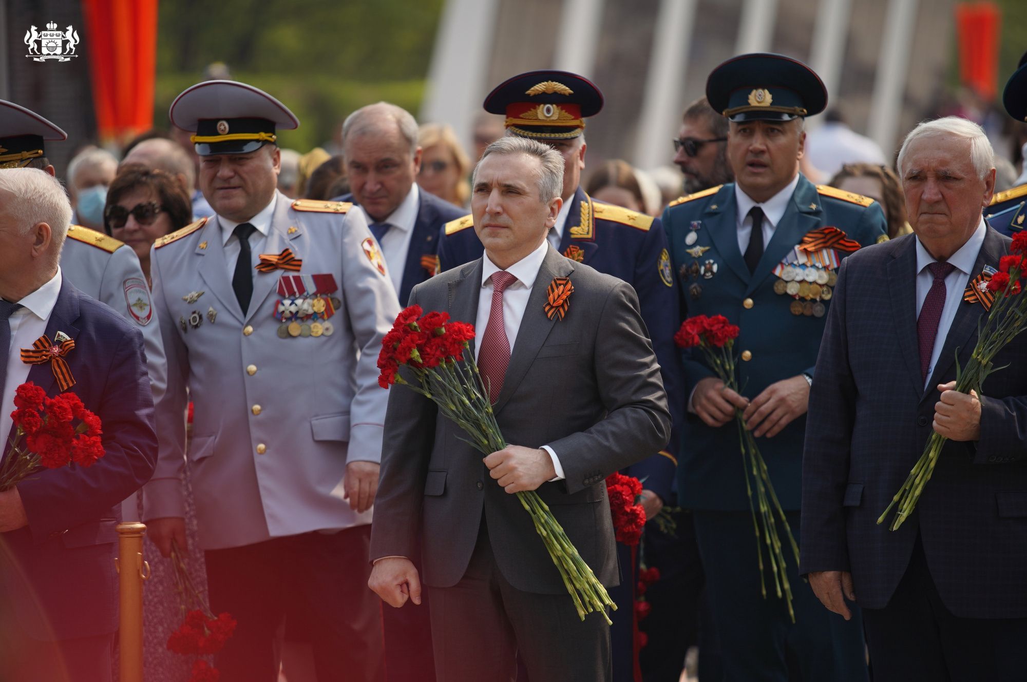 Дань глубокого уважения всем тем, кто отстоял нашу Родину и освободил народы Европы, отдали губернатор Александр Моор, временно исполняющий обязанности заместителя секретаря Генерального совета партии «Единая Россия» Дмитрий Кобылкин, спикер областного парламента Сергей Корепанов, прокурор Тюменской области Владислав Московских, глава города Тюмени Руслан Кухарук и другие официальные лица. Участники церемонии почтили минутой молчания память павших героев.