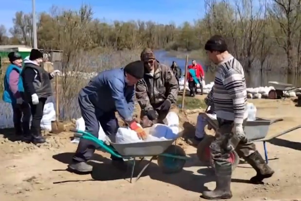 В населенном пункте продолжаются работы по устройству временной насыпи, чтобы защитить деревню от паводка. Дамбу возводят местные жители.