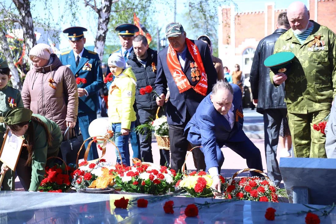 Представители трудовых коллективов почтили память погибших в годы Великой Отечественной войны и тех, кто не дожил до очередного Дня Победы минутой молчания, и возложили живые цветы к Вечному огню.