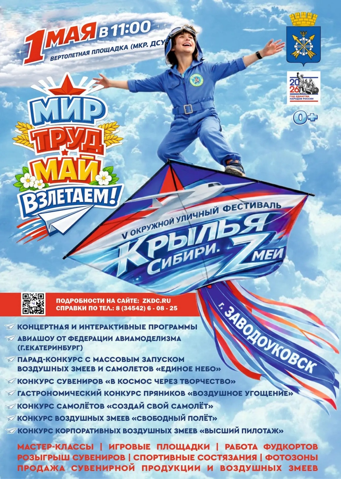 В Заводоуковске пройдет V уличный фестиваль «Крылья Сибири. Zмей». Жителей и гостей города приглашают на праздник 1 мая.