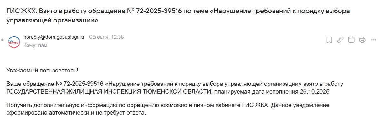 Все шло в целом неплохо, пока в адрес жильцов не начали приходить уведомления о необходимости, в том числе, проголосовать за смену УК. Голосование проводилось с 10 июля по 29 августа 2025 года, и каждый имел возможность высказаться. В качестве альтернативы предлагалось перейти под управление УК «Цитрин». Многие этой возможностью пренебрегли, поскольку ситуация с управлением их устраивала — только бы не было хуже.