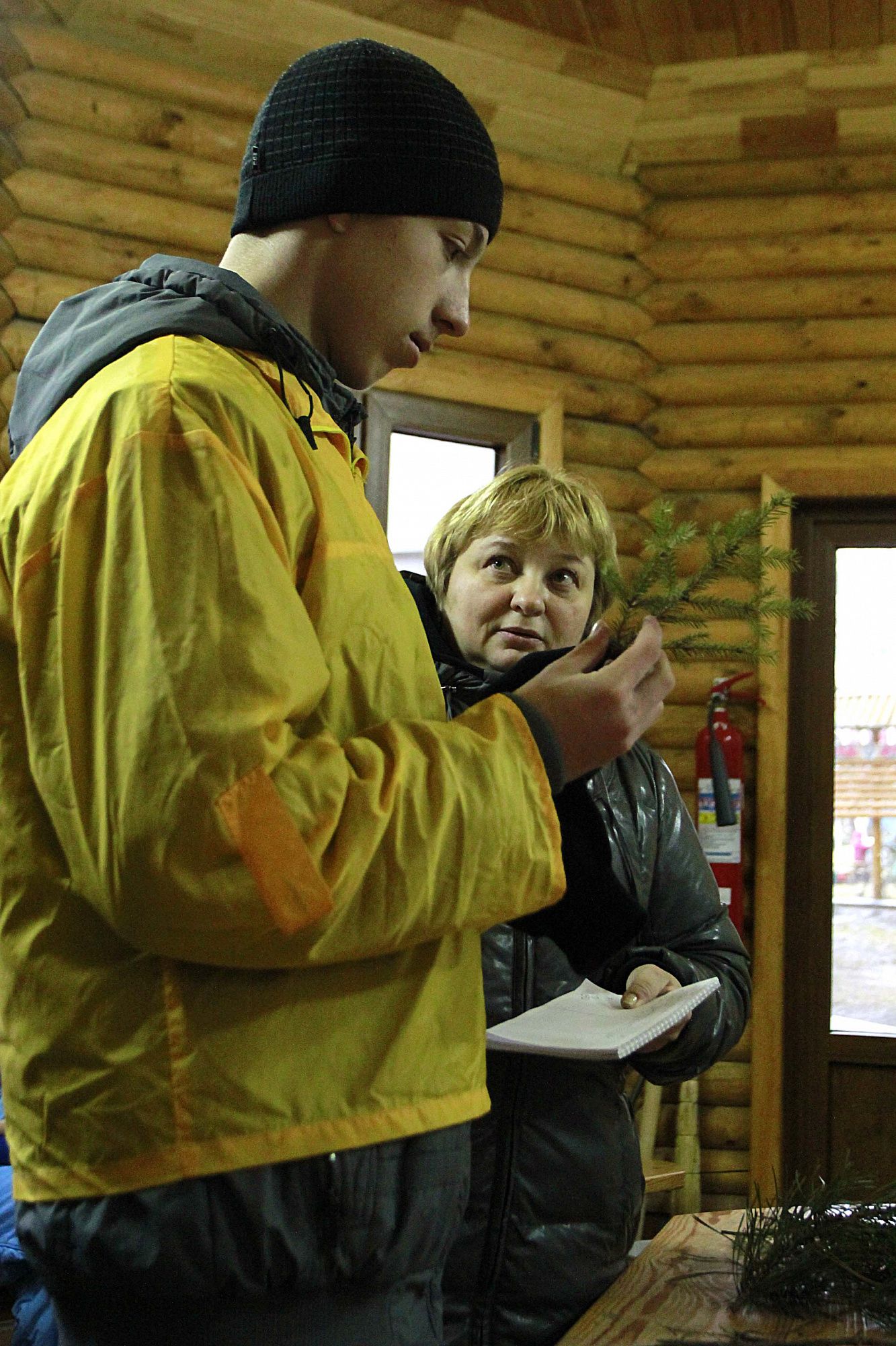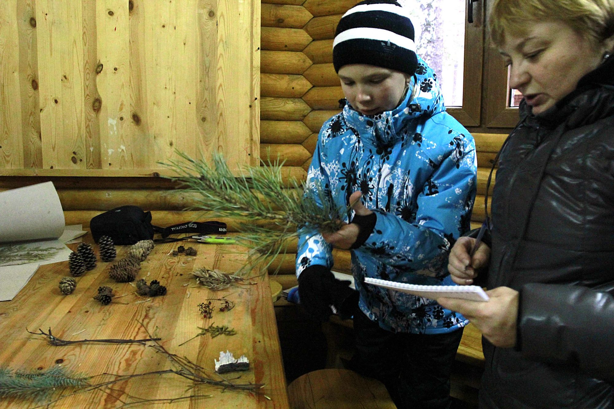 Команды перебегают от станции к станции, выполняя задания биологов и лесничих. Так, к примеру, на дендрологическом этапе им нужно соотнести побеги и шишки деревьев с их ветками. На выбор предоставлены клен ясенелистный, береза бородавчатая, ель голубая, ель сибирская, сосна обыкновенная и лиственница сибирская. Ребята с этим заданием справляются не очень уверенно, часто называя побеги крылатки клена «вертолетиками» и затрудняясь ответить, какому дереву они принадлежат.
