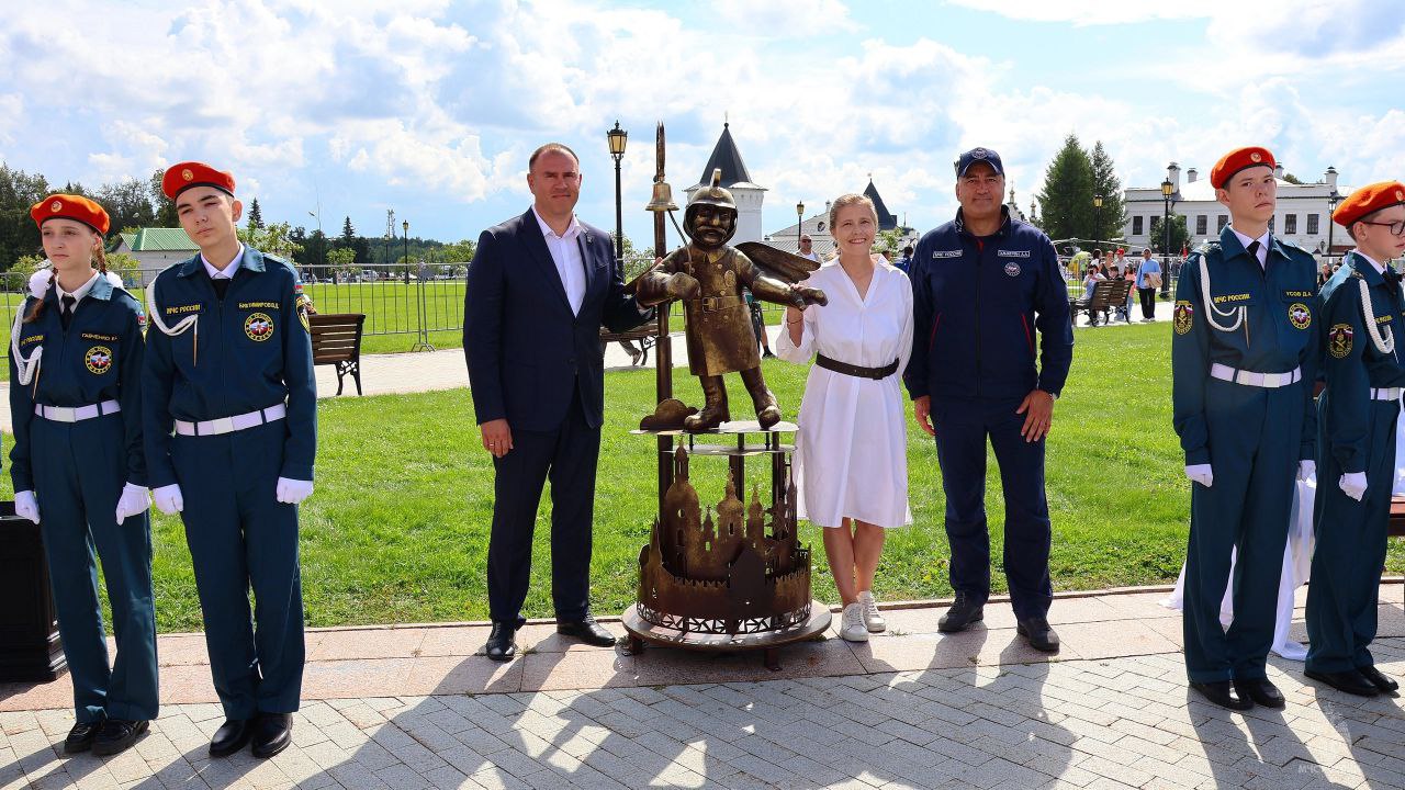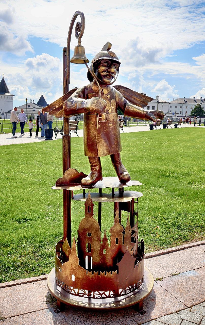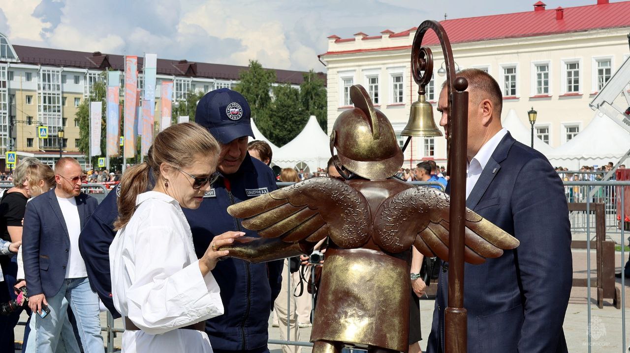 На Красной площади Тобольского Кремля проявился ангел «Оберегающий». Фигура пожарного символизирует защиту от огня.
