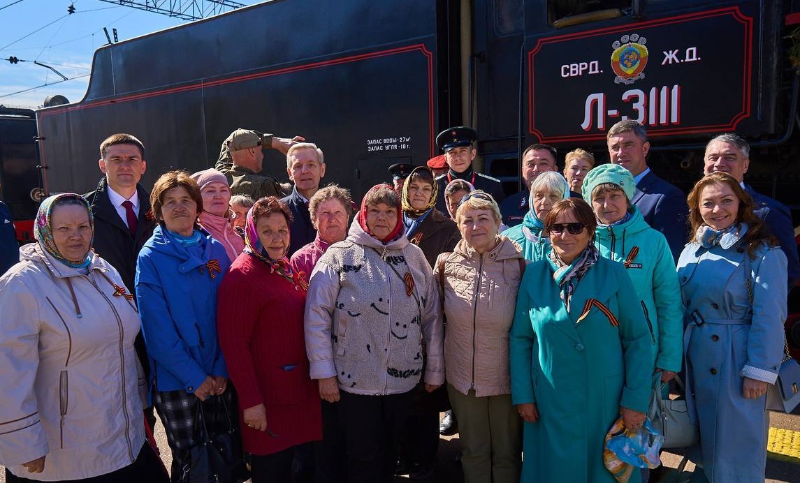 Поезд прогудел, прибывая на станцию. Тюменцы радостно приветствовали машинистов. В составе эшелона — раритетные паровозы ЛВ-355 и Л-3111, солдатский вагон-теплушка, офицерский вагон, аптека-перевязочная, вагон-санпропускник, вагон-кухня, хлебопекарня. Вместе с ветеранами гости попробовали яичницу на лопате, приготовленную в топке паровоза.